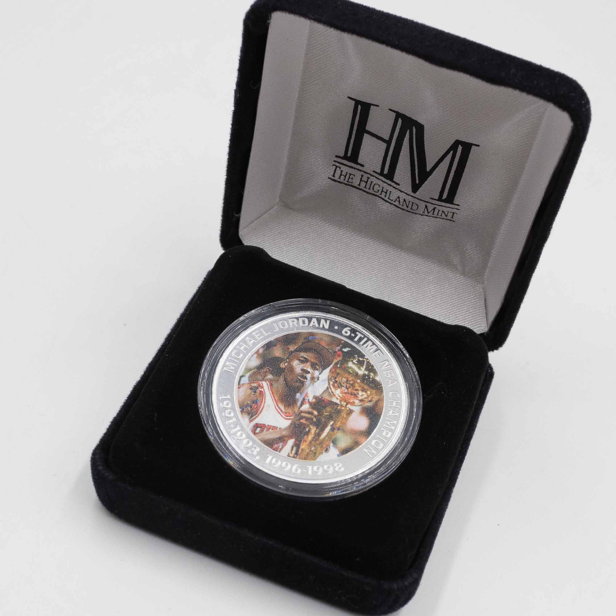 Highland Mint Michael Jordan Chicago Bulls 6-Time NBA Champion versilberte Gendenkmünze.