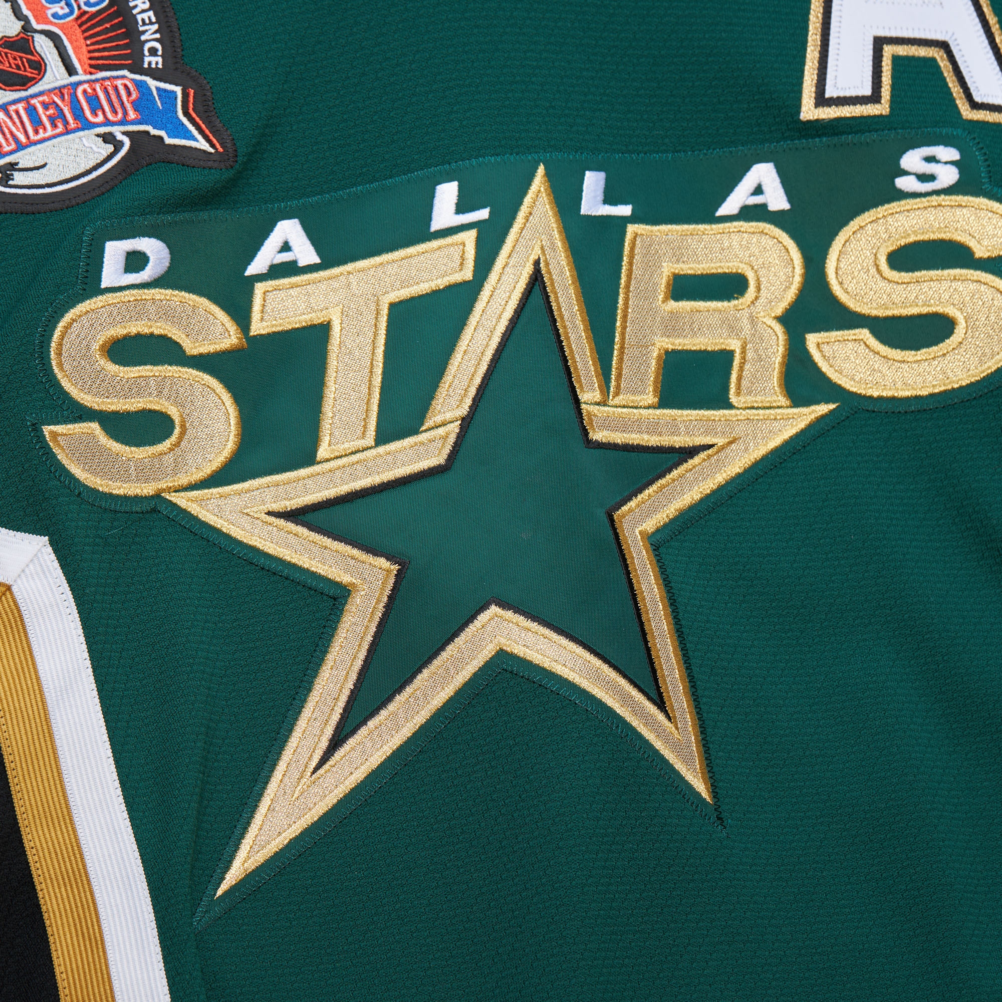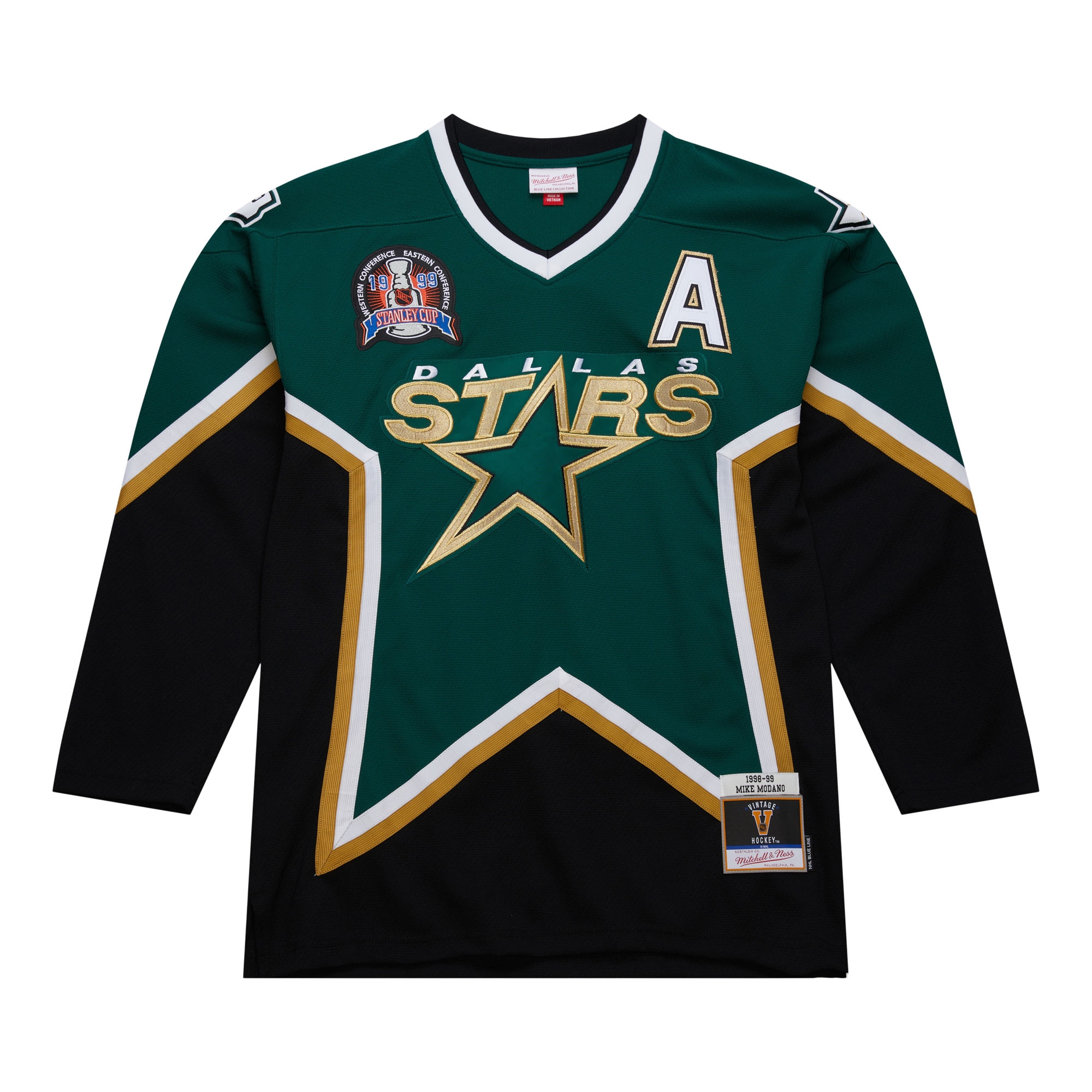 Mitchell & Ness NHL Herren Power Play Eishockey Trikot von Dallas Stars Legende Mike Modano aus der Saison 1998-99 mit Stanley Cup Patch.