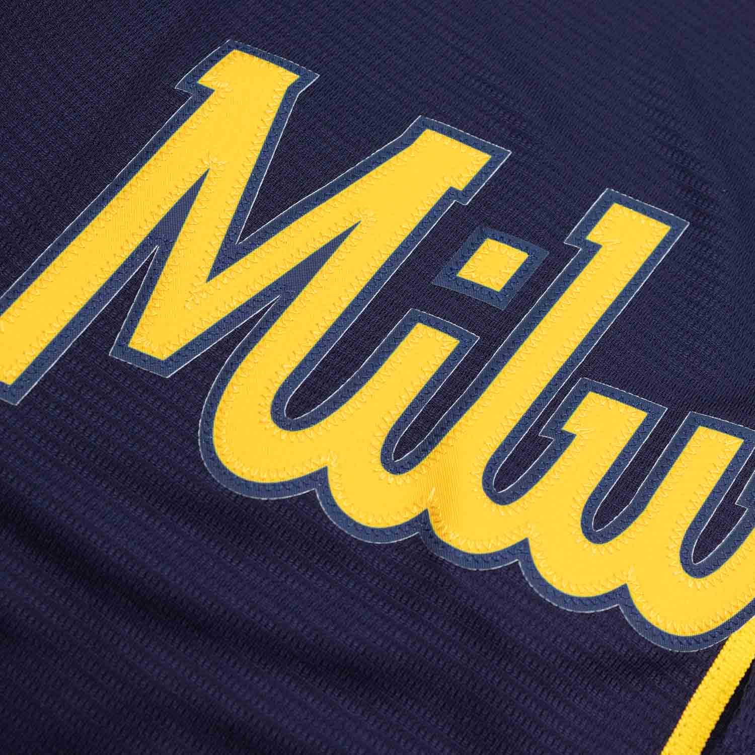 Nike MLB Herren Baseball Trikot von den Milwaukee Brewers im offiziellen Replica Alternate Road Design.