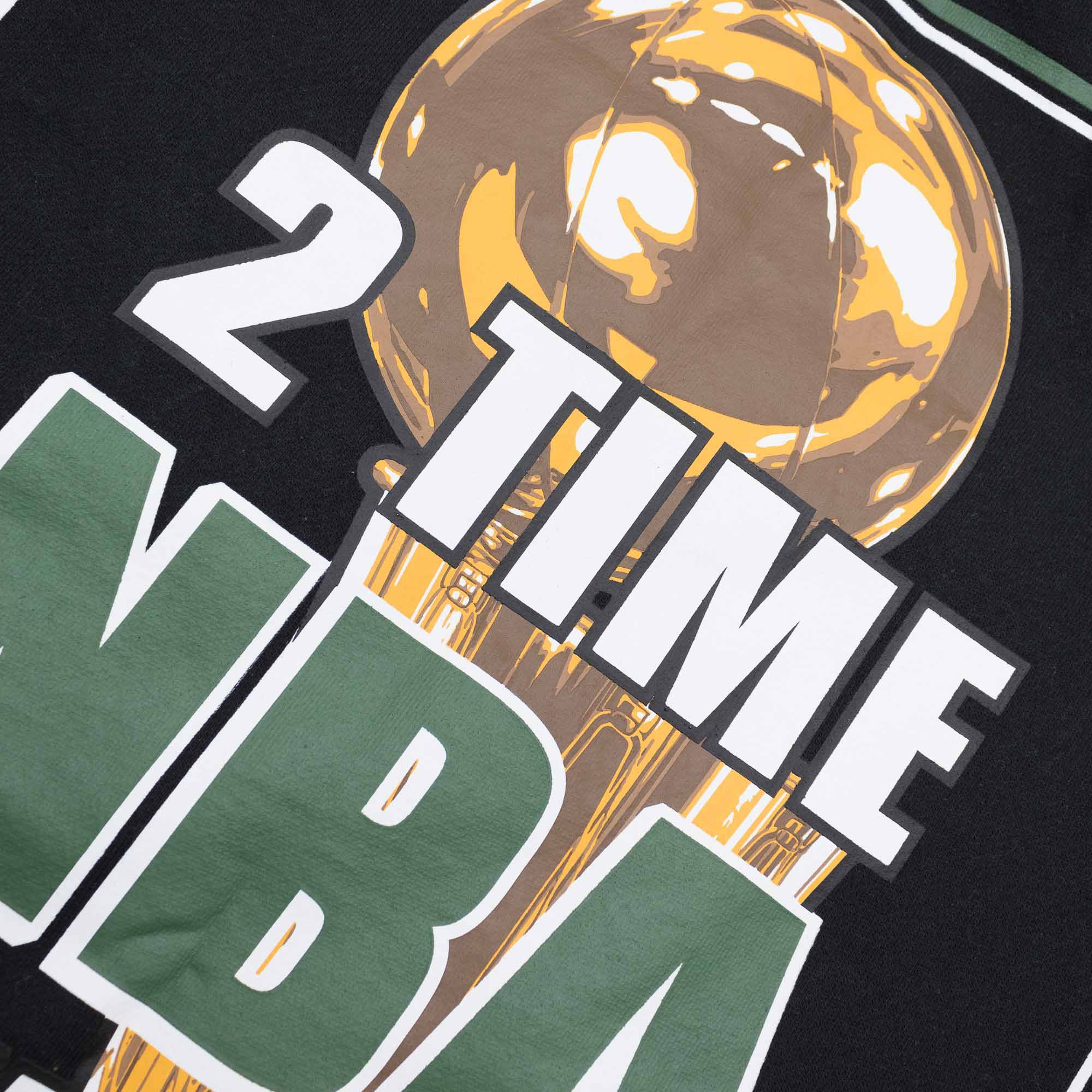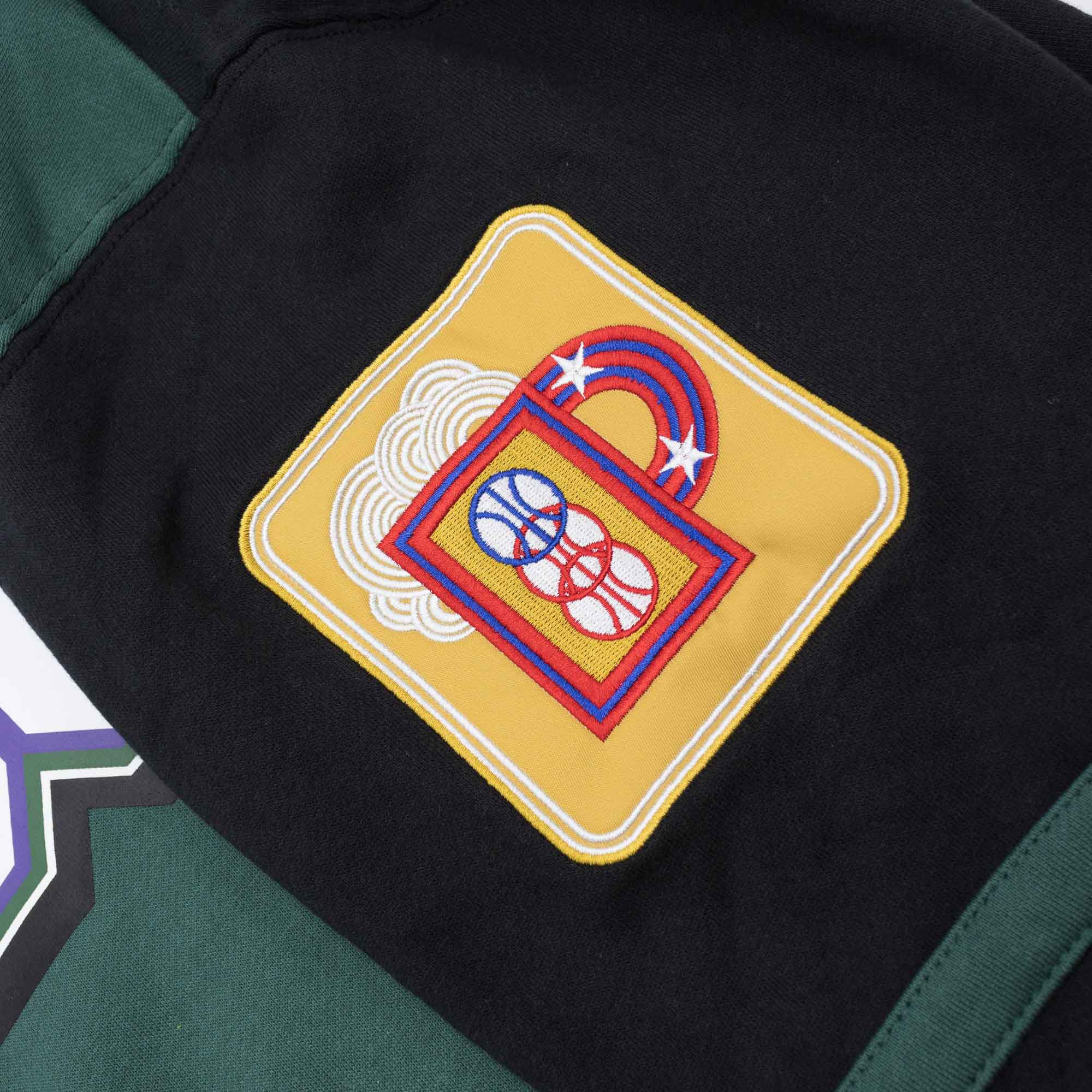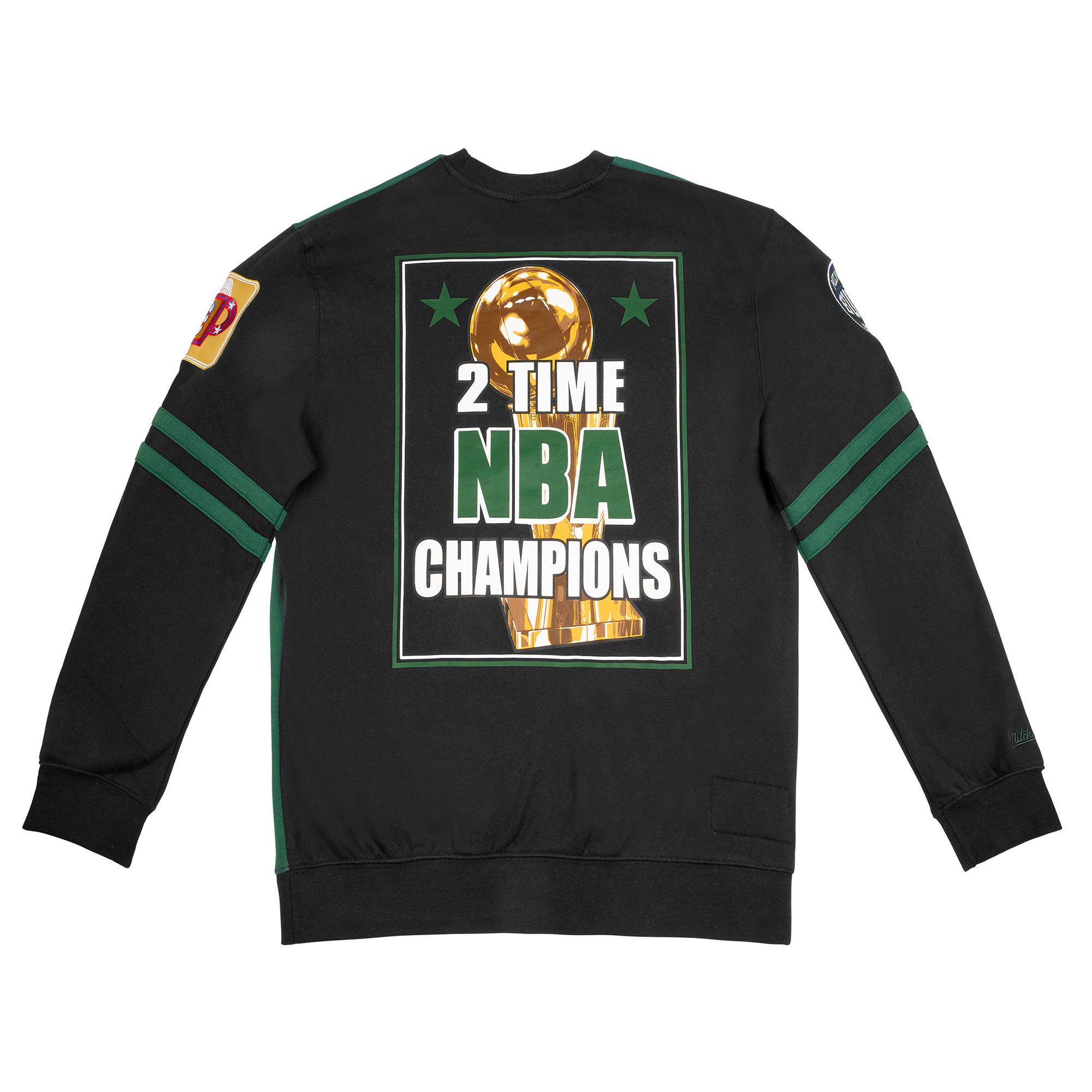 Hochwertiger Mitchell & Ness Premium Throwback Basketball Pullover im eindeutigen NBA Teamdesign. Die Vorderseite ist mit dem Mitchell & Ness Milwaukee Bucks Schriftzug und Team Logo dekoriert und aufgedruckt. Die Rückseite ist mit dem großen 2x NBA Champions Logo bedruckt. Passend dazu sind die Ärmel mit einem Beer und Team Logo bestickt. Abgerundet wird der Look mit den aufgenähten Ärmelstreifen und dem Mitchell & Ness Schriftzug am rechten Ärmelende. Das extra weiche Baumwoll-Polyester-Fleece sorgt für ein super angenehmes und warmes Tragegefühl. Das Design ist Alltagstauglich und sorgt für deinen täglichen Football-Style.