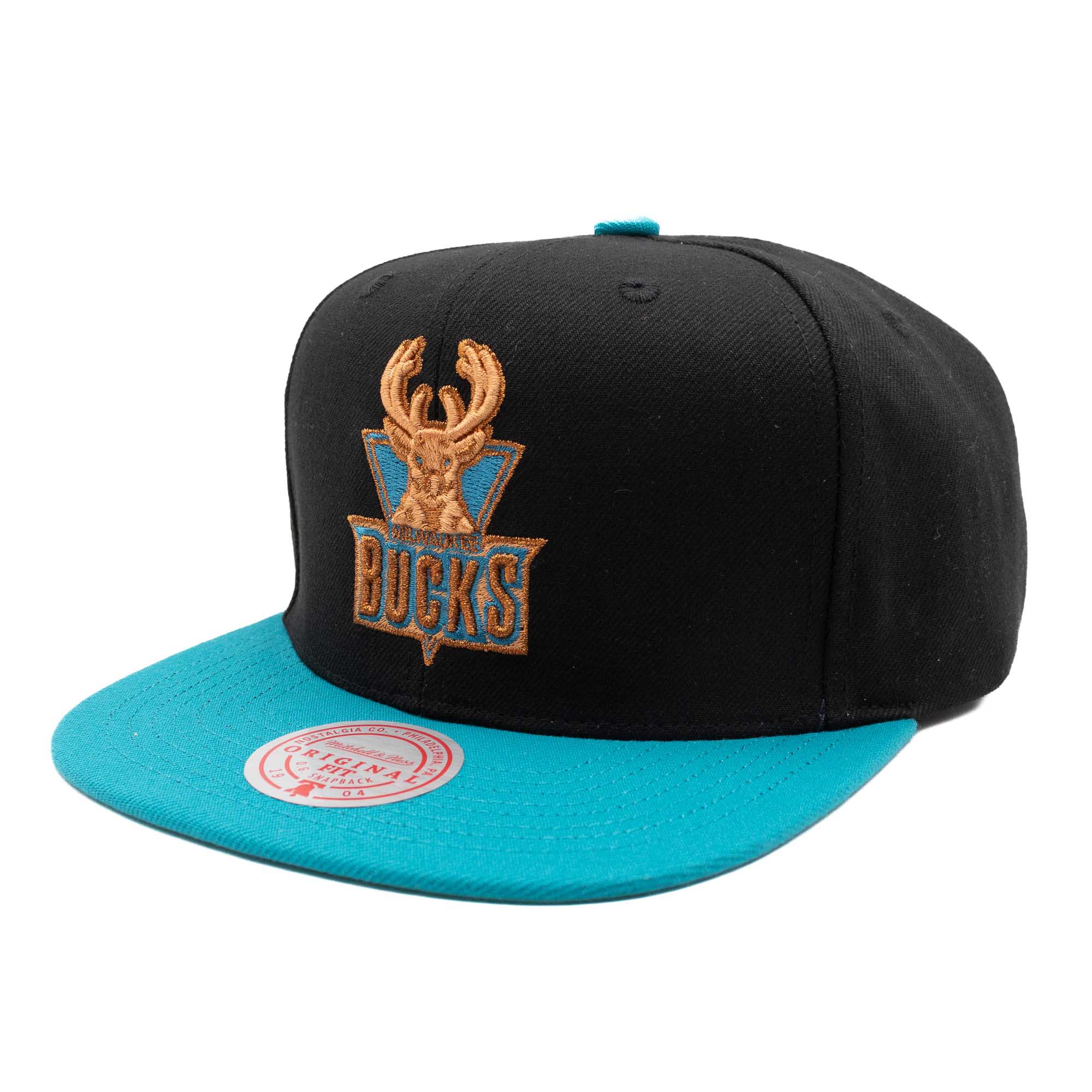 Mitchell & Ness NBA Original Fit Basketball Snapback Cap von deinen Milwaukee Bucks im zweifarbigen Make Cents Style.