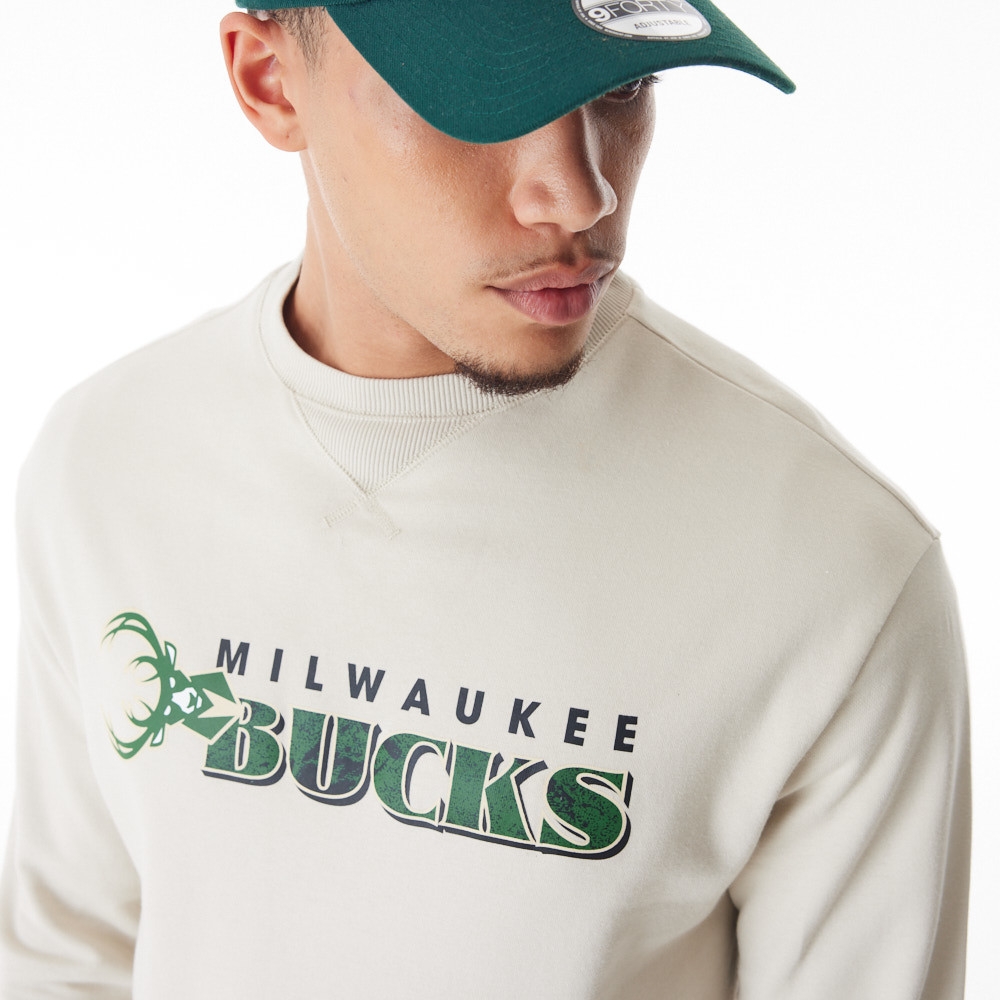 Milwaukee Bucks New Era NBA Crewneck Sweatshirt Stone