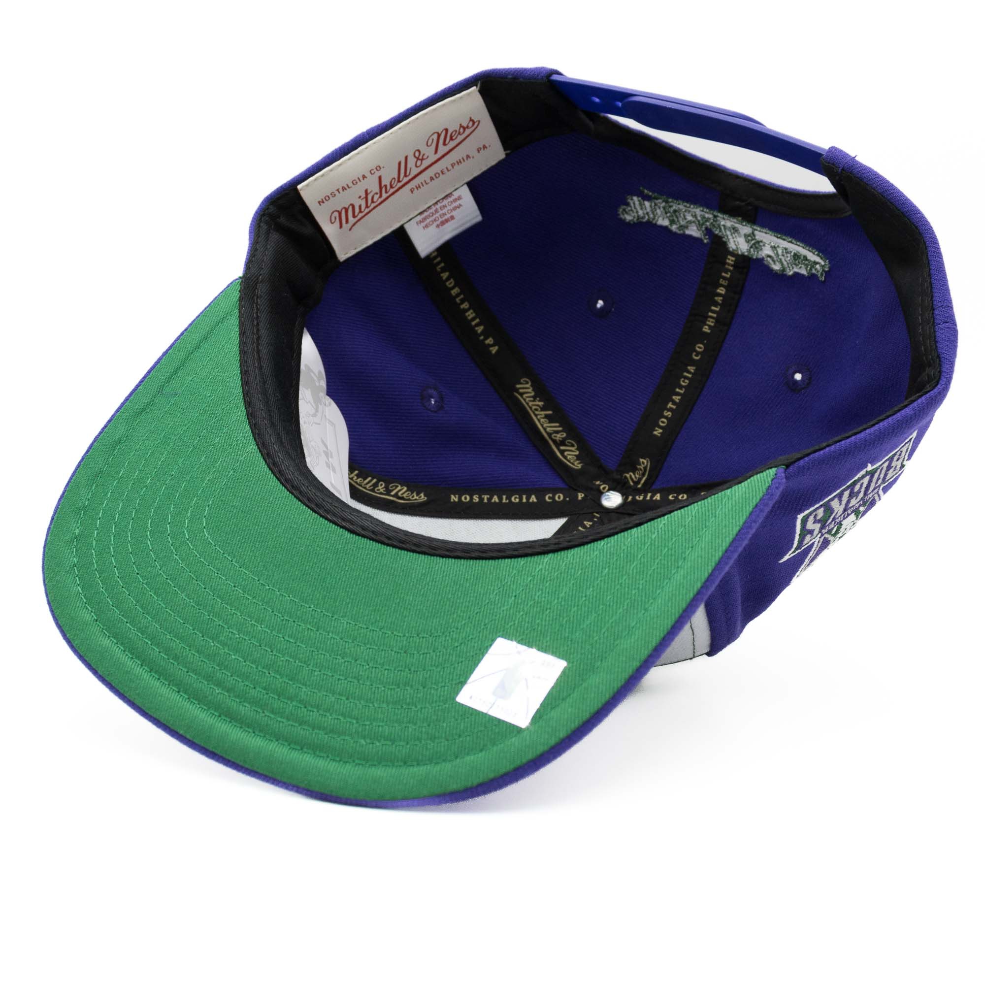 Klassische Mitchell & Ness Original Fit Snapback mit schlanken, flachen Schirm und hoher, fester Krone. Für mehr Atmungsaktivität sorgen die gestickten Ösen; das innenseitige Schweißband erhöht den Tragekomfort. Den flachen Capschirm kannst du nach Belieben in die gewünschte Form biegen. Der Snapback-Verschluss ermöglicht eine einfache Anpassung und gewährleistet einen bequemen und sicheren Sitz für alle Kopfgrößen.