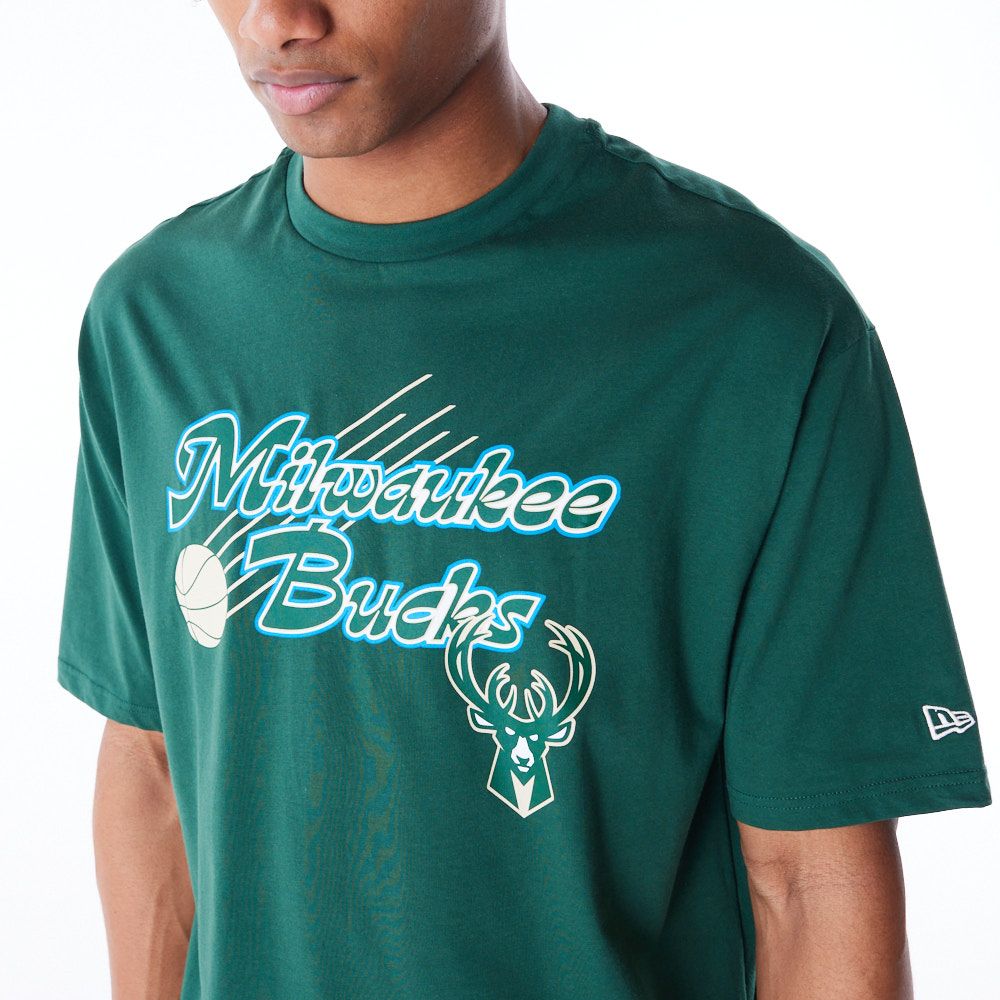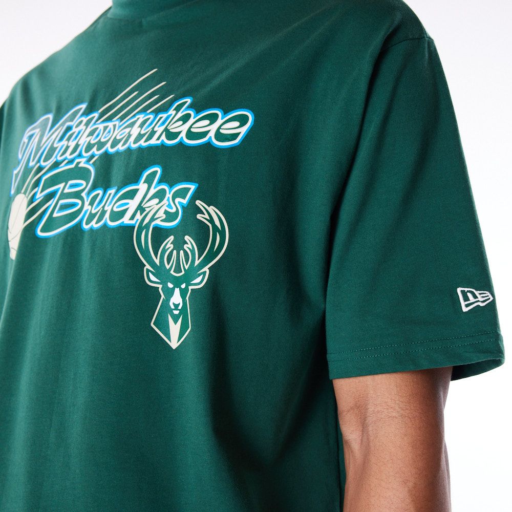 New Era NBA Herren Basketball T-Shirt von deinen Milwaukee Bucks im Script Oversized Style.