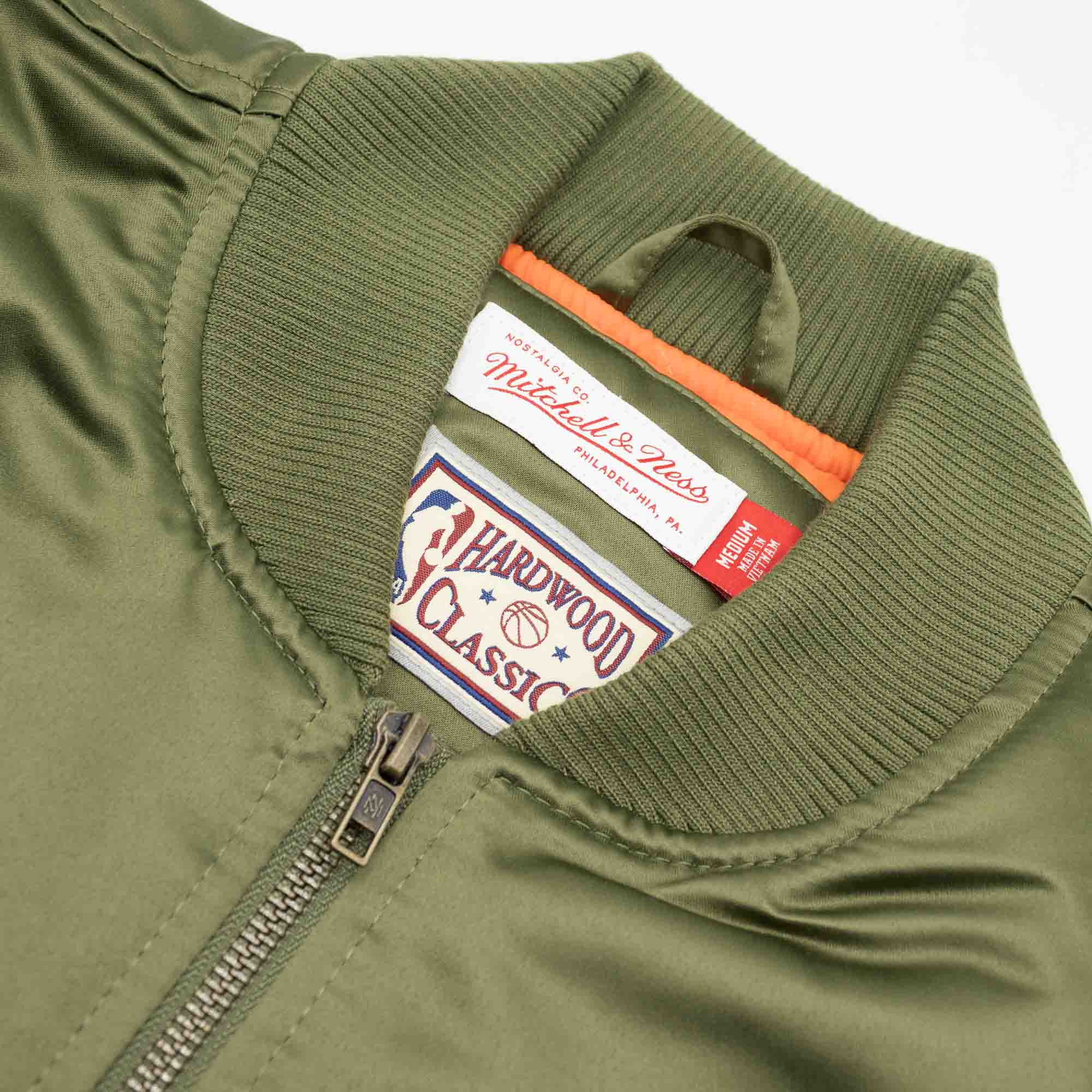 Die olivgrüne Mitchell & Ness NBA Basketball Jacke sorgt für einen modischen Auftritt. Passend zum olivgrünen Äußeren ist die Innenseite komplett in orange gestaltet. Diese Mitchell and Ness Premium NHL Jacke mit klassischer Satin-Außenhülle. Das mittelschwere Futter sorgt auch an kalten Tagen für eine angenehme Wärmeisolierung, die elastischen Strickbünde am Kragen, am Bund und an den Ärmelenden sorgen für den absoluten Retro-Look. Die NBA-Jacke hat zwei äußere Taschen, eine Innentasche und einen durchgehenden Reißverschluss.