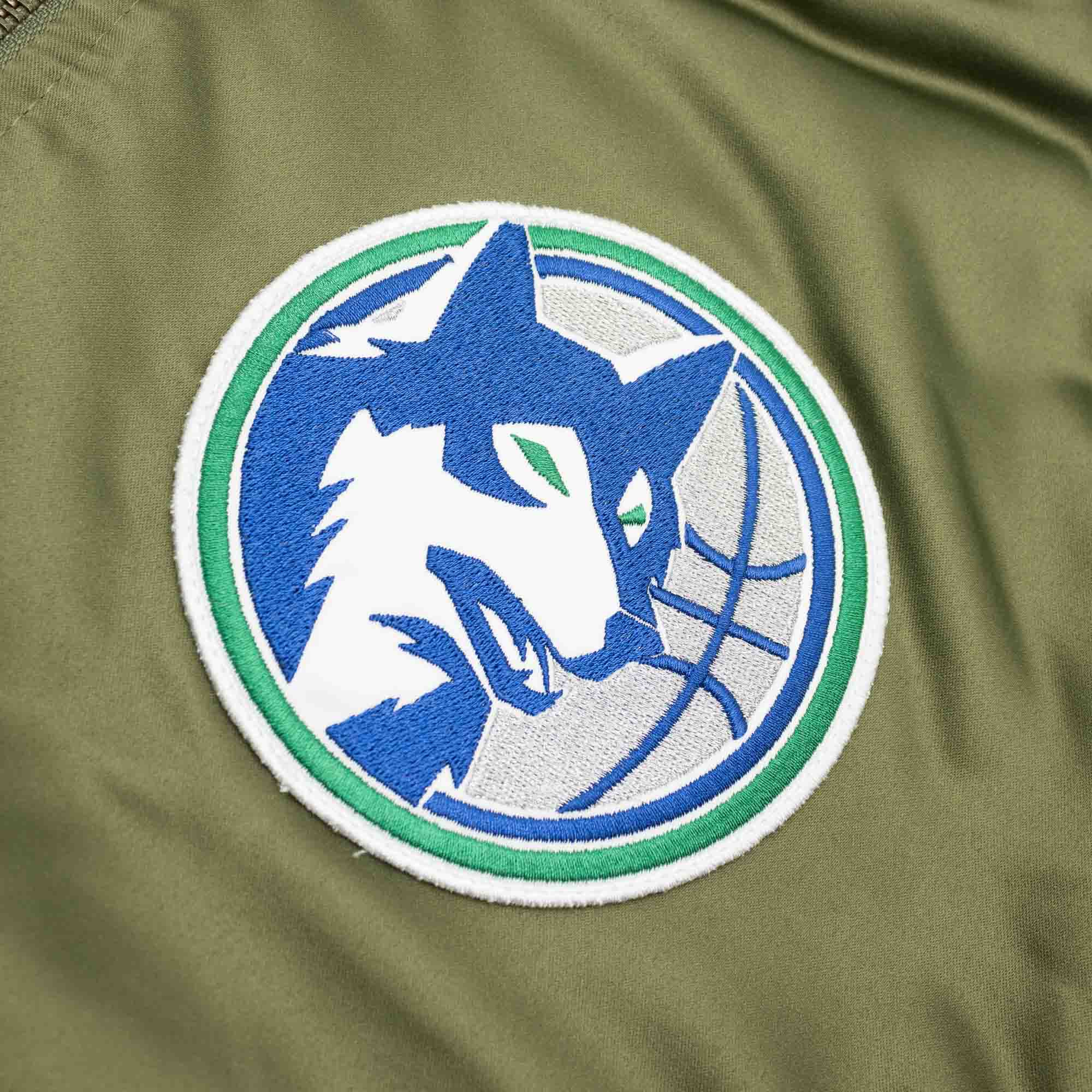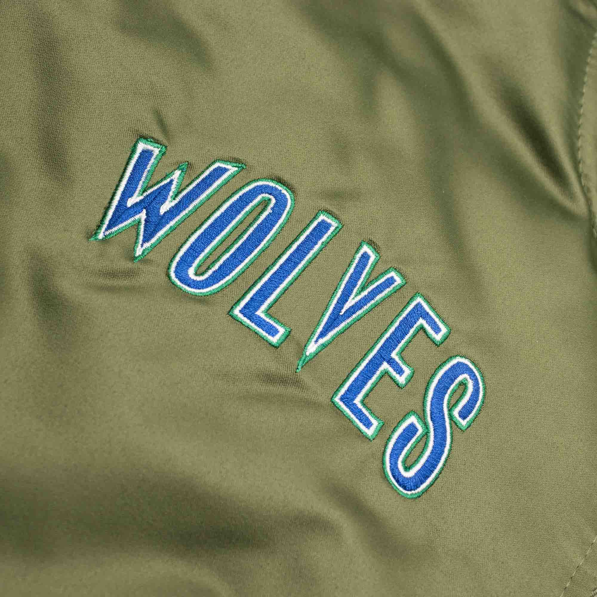 Minnesota Timberwolves Olive Mitchell & Ness Heavyweight Satin NBA Jacke