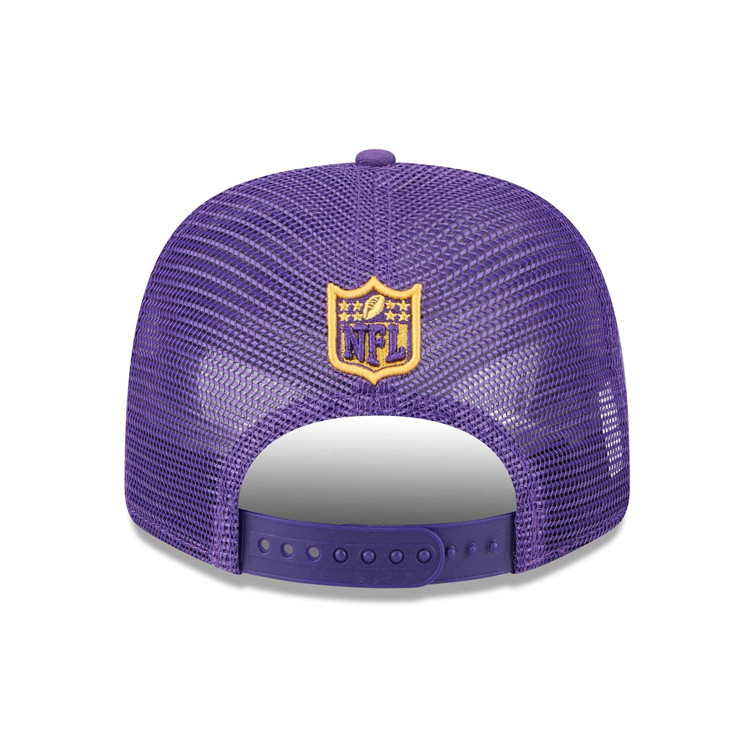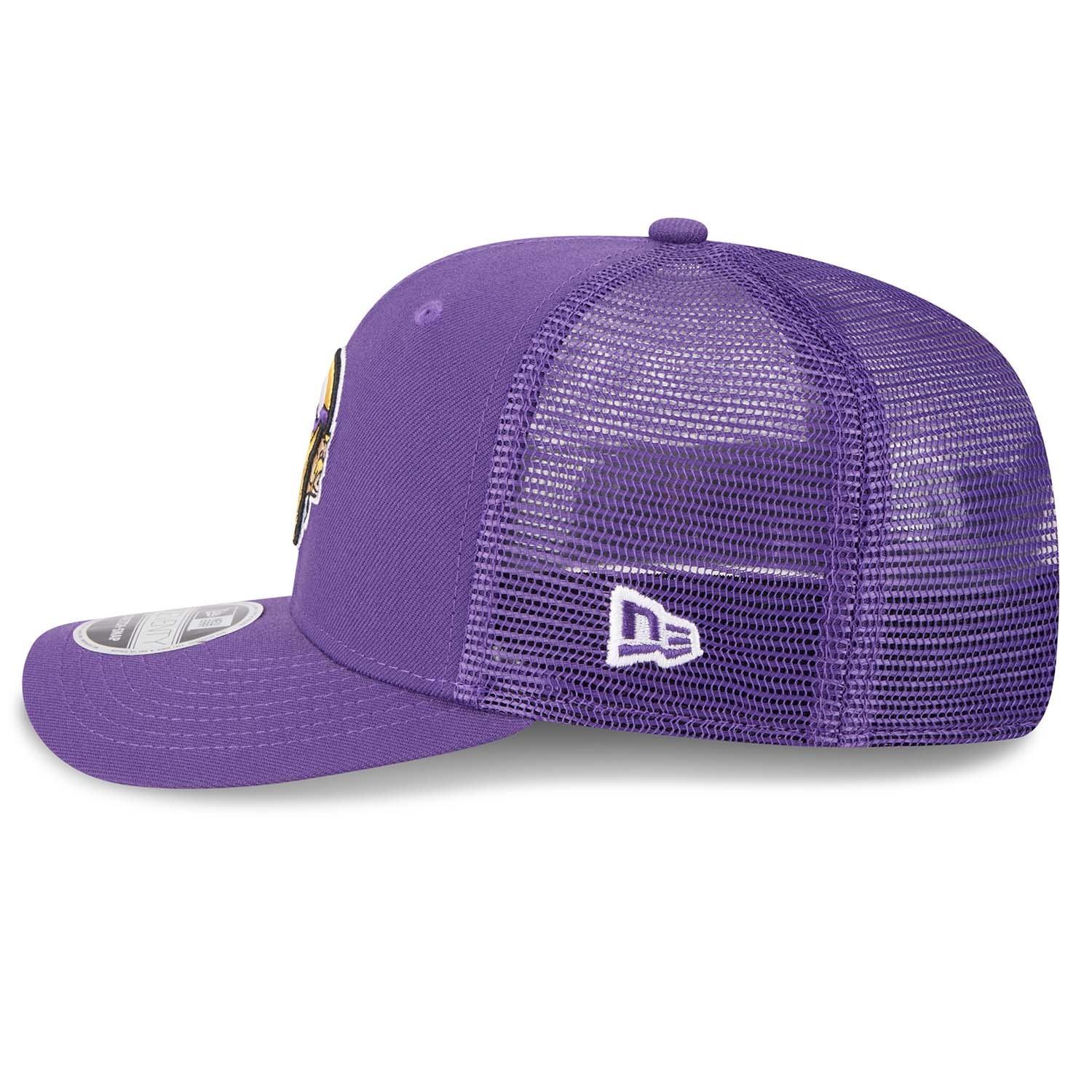 Offizielle Football-Cap der Minnesota Vikings mit hoher, fester Crown, gebogenem Visor und Trucker Meshback im lila Teamdesign.