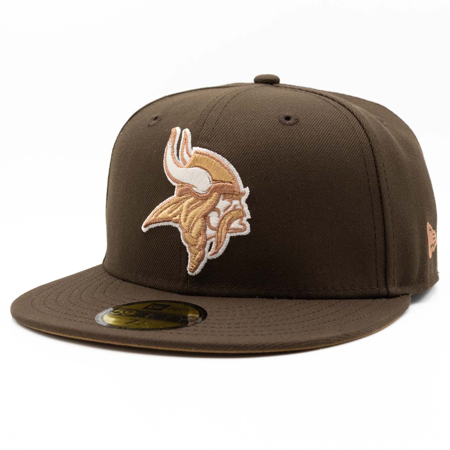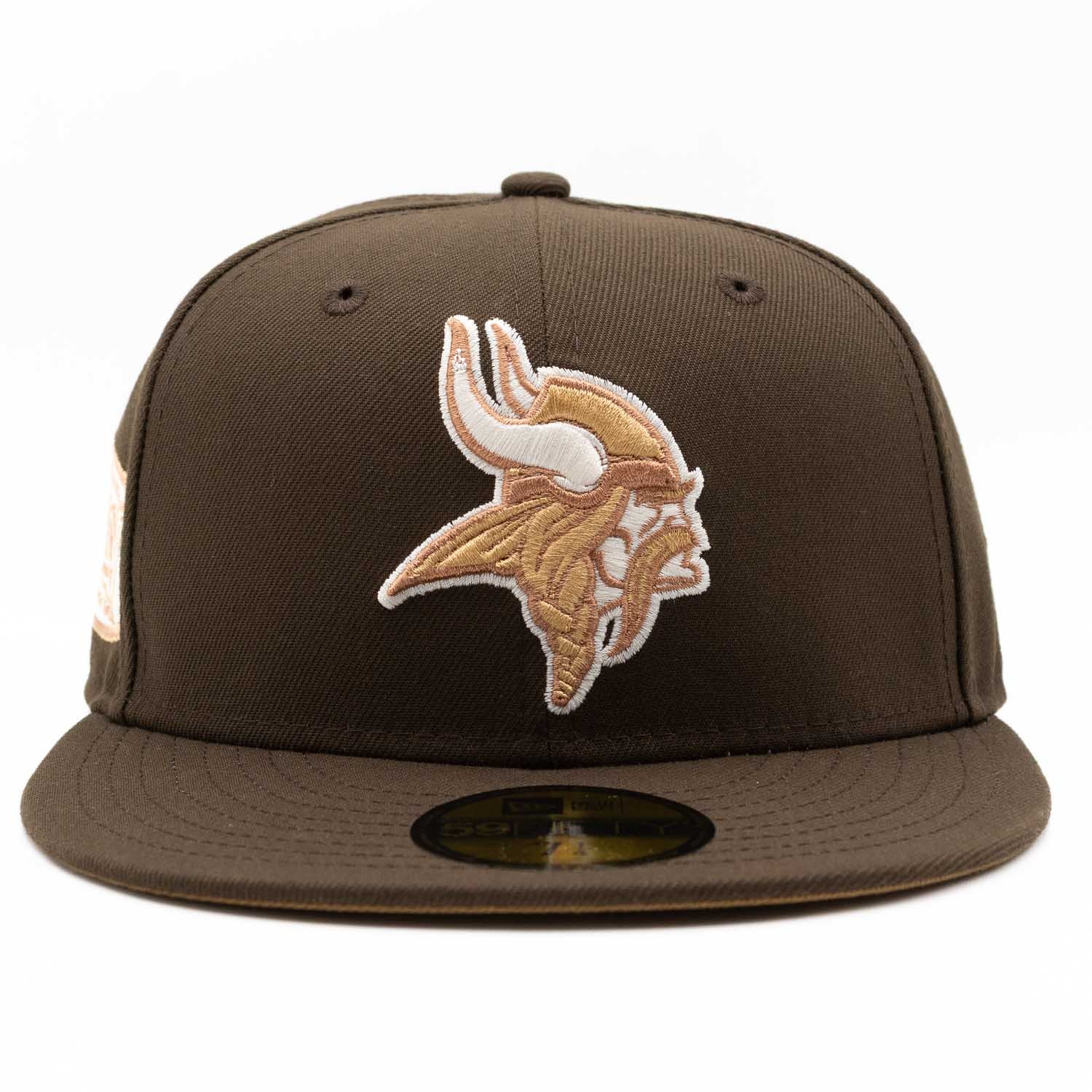 New Era NFL American Football 59FIFTY Fitted Kappe von deinen Minnesota Vikings im brauen Walnut Style mit XLV Anniversary Sidepatch.