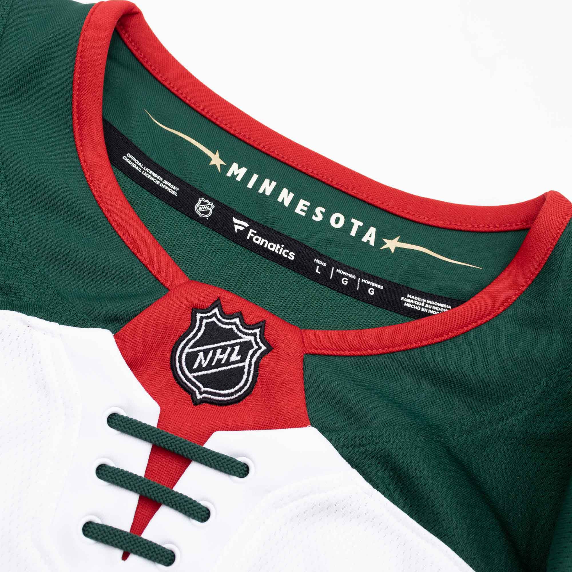 Das Minnesota Wild Replica Breakaway Trikot entspricht dem original NHL-Design. Das große Minnesota Wild Teamlogo auf der Vorderseite ist hochwertig aufgenäht. Zusätzlich sind das NHL Shield Logo und das Fanatics Tag aufgenäht. Das Breakaway NHL Trikot von Fanatics ist das erste offizielle Fantrikot, welches nur für die Fans entwickelt wurde. Inspiriert durch die Bedürfnisse und Anforderungen der Eishockey Fans im Alltag ist ein Trikot entstanden, dass einen einmaligen Tragekomfort und detailgetreue Nähe zum Originaltrikot liefert. Zum Einsatz kommen diese exklusiven Trikotfunktionen für alle Minnesota Wild Fans: