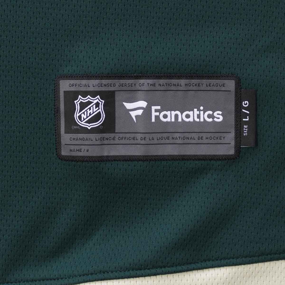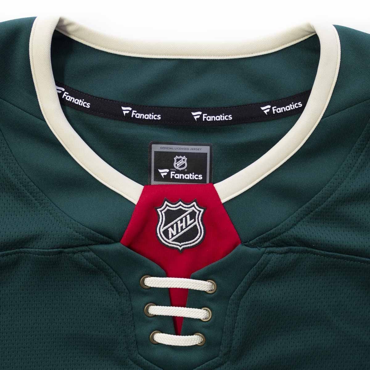 Das Minnesota Wild Replica Breakaway Trikot entspricht dem original NHL-Design. Das große Minnesota Wild Teamlogo auf der Vorderseite ist hochwertig aufgenäht. Die beiden Schulter-Patches sind im Thermodruckverfahren aufgebracht. Zusätzlich sind das NHL Shield Logo und das Fanatics Tag aufgenäht.