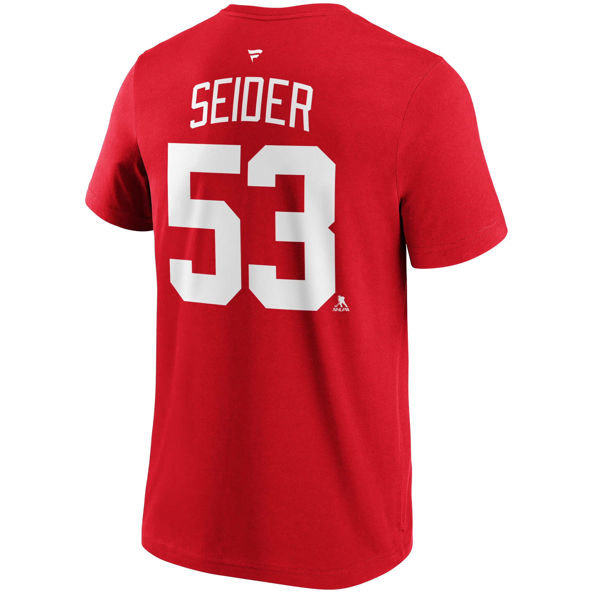 Fanatics NHL Herren Eishockey T-Shirt von Detroit Red Wings Verteidiger Moritz Seider im Player Design.