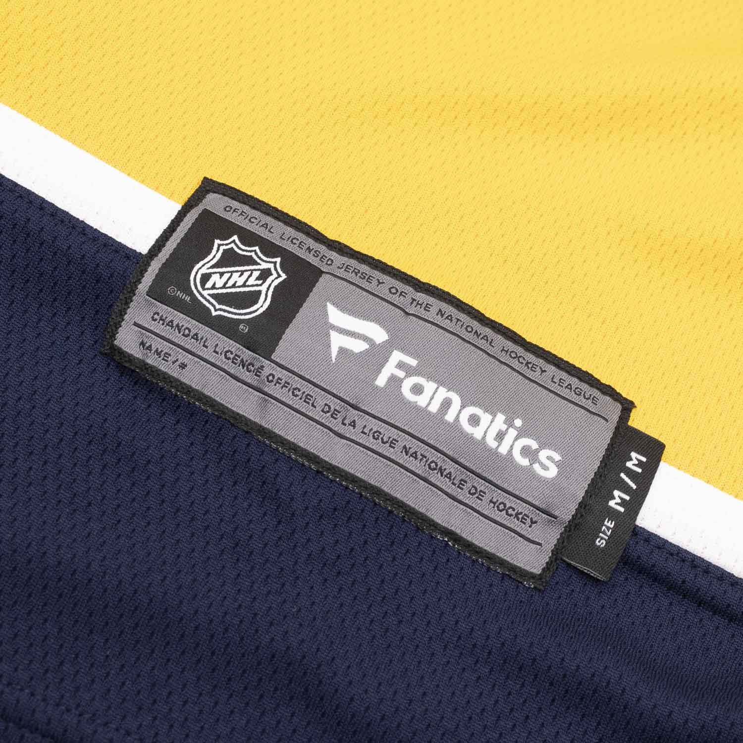Das Nashville Predators Replica Breakaway Trikot entspricht dem original NHL-Design. Das große Nashville Predators Teamlogo auf der Vorderseite ist hochwertig aufgenäht. Der Schulter-Patch ist im Thermodruckverfahren aufgebracht. Zusätzlich sind das NHL Shield Logo und das Fanatics Tag aufgenäht. Im Kragen befinden sich die Klaviertasten.