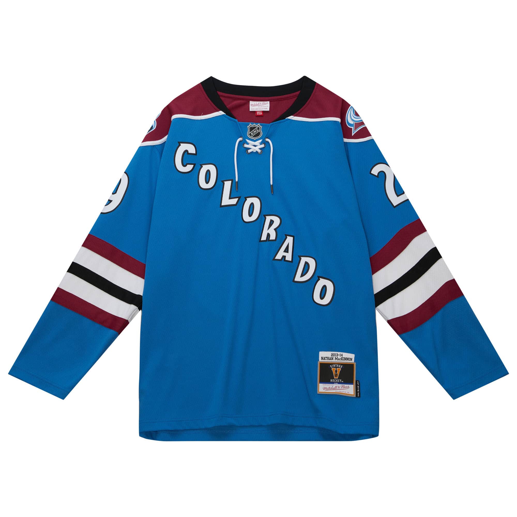 Mitchell & Ness NHL Herren Blue Line Eishockey Trikot von Colorado Avalanche Superstar Nathan MacKinnon aus der Saison 2013-14.
