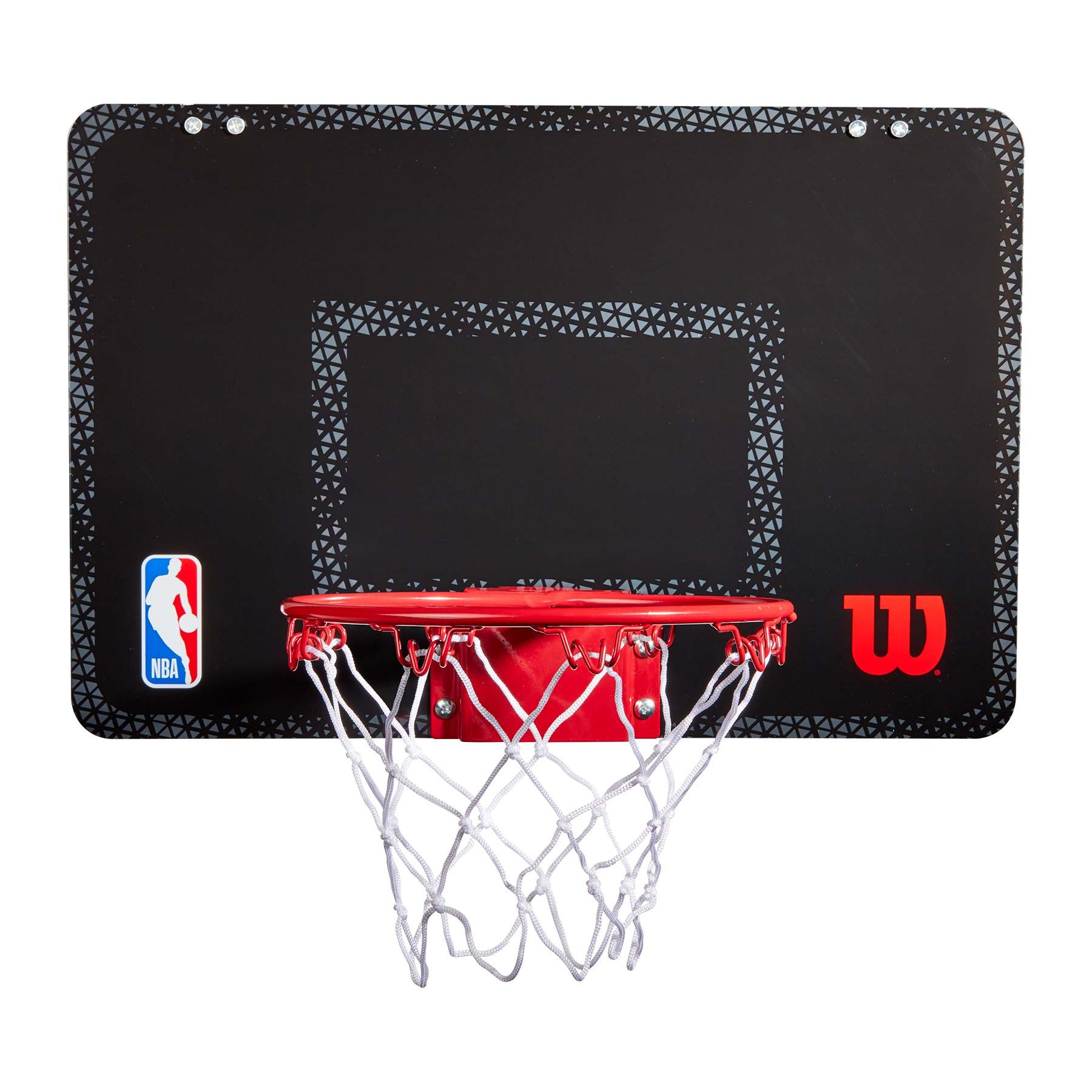 Das Wilson NBA Forge Pro Mini Hoop Set ist der ultimative Basketball-Spaß für dein Fan Cave oder auch in jedem Büro. Das hochwertige Korbset kommt mit bruchsicherem Backboard aus Polycarbonat und einem Heavy-Duty Stahlring mit Netz. Zusätzlich sind in diesem Set alle 30 NBA Teamlogo Sticker enthalten, sodass du deinen Korb ganz einfach personalisieren kannst. Für die einfache Montage kommt das Mini-Boardset mit einer praktischen und extra gepolsterten Türhalterung, die für die meisten Standardtüren einsetzbar ist.