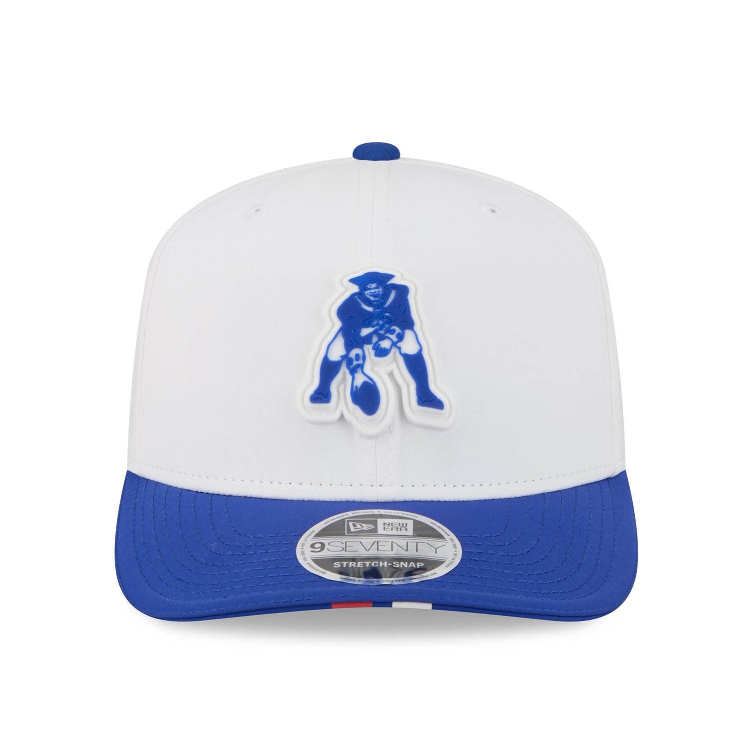 New Era American Football Cap von deinen New England Patriots im Historic Logo Stretch-Snap 9SEVENTY Cap Style aus der offiziellen 2025 NFL Training Camp Kollektion.