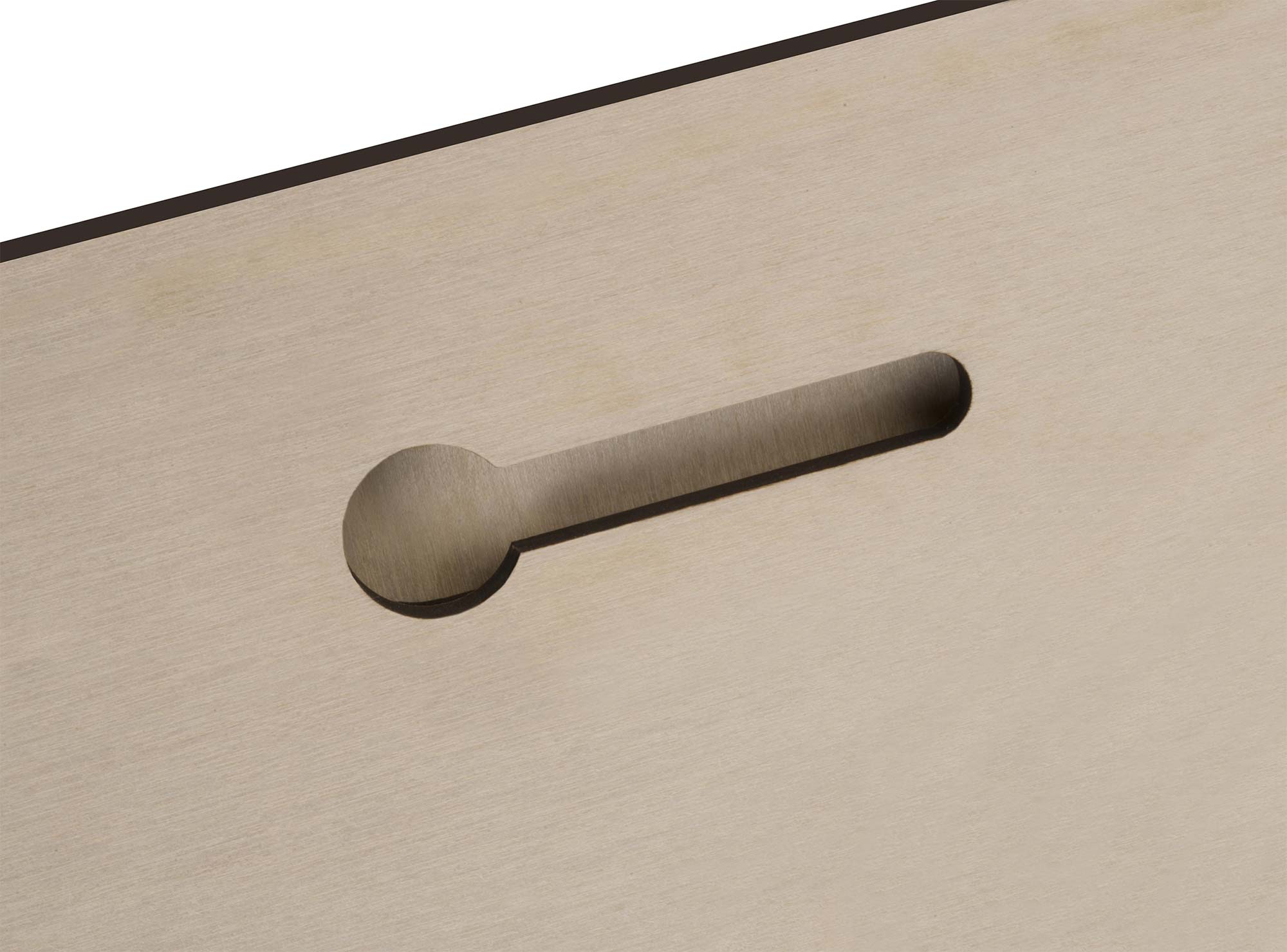 MATERIAL: Holzwerkstoff in drei Schichten mit Holzmaserung.
