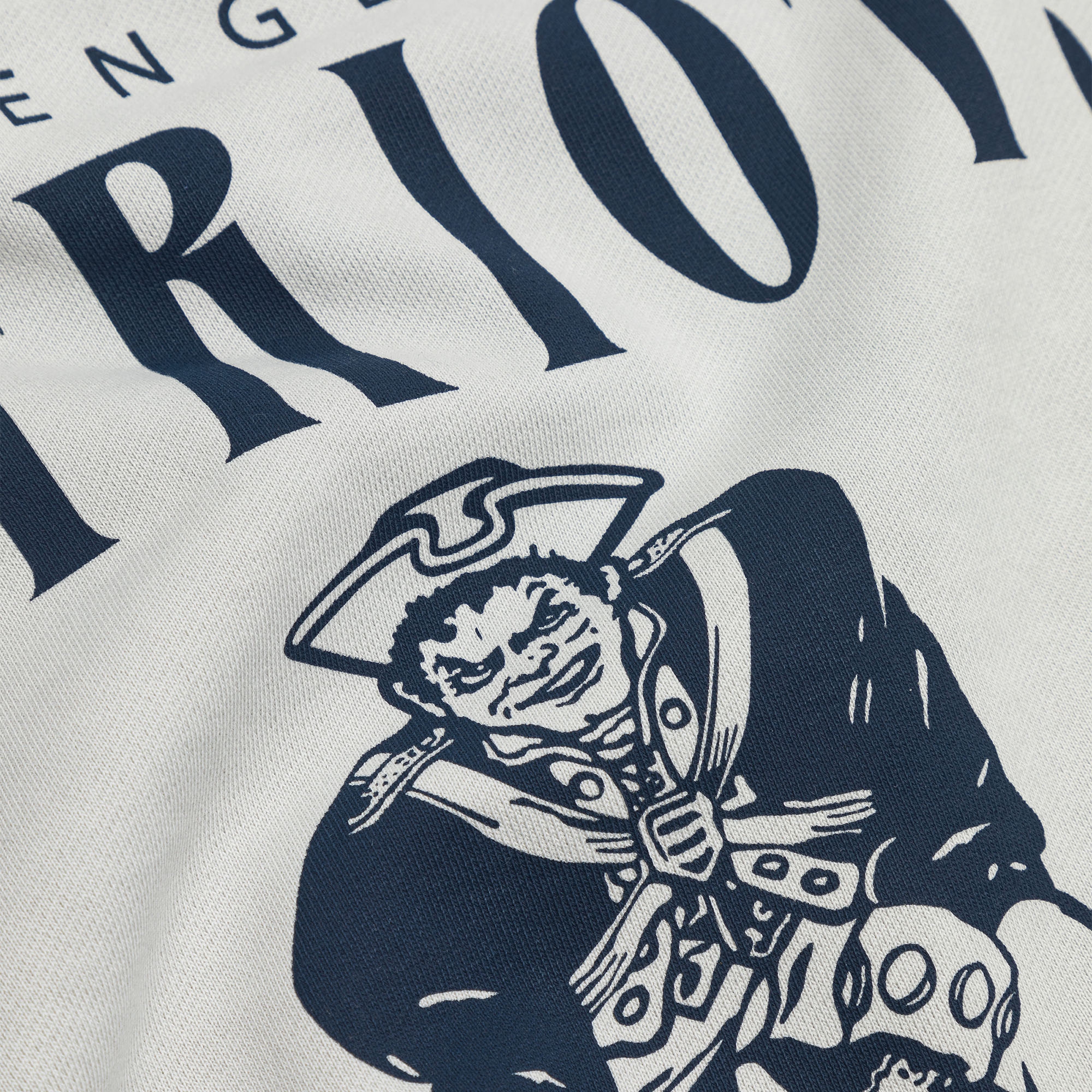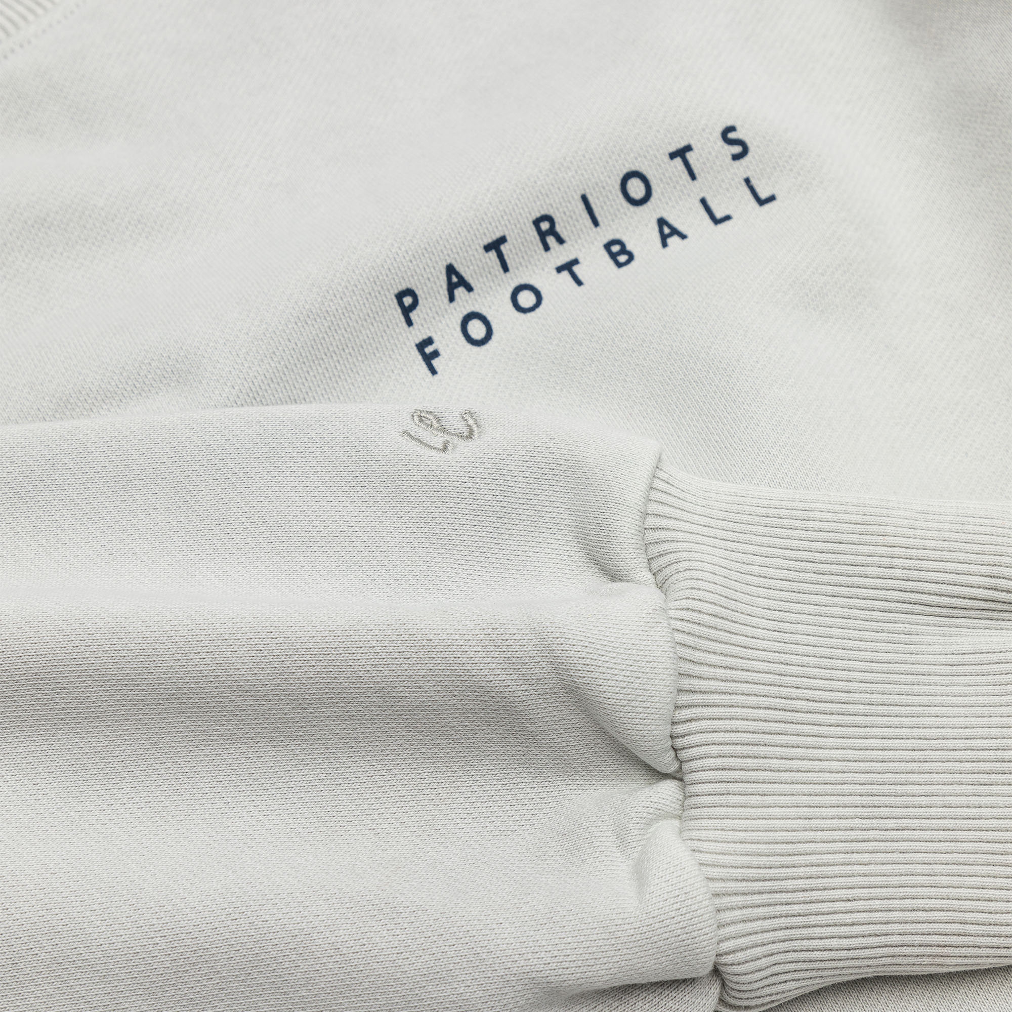 Das stückgefärbte Sweatshirt in grau zeigt das Classic Patriots Logo in einem großflächigem petrolfarbenen Backprint inklusive Sterne für die Anzahl der gewonnen Meisterschaften. Der Patriots Football Print auf der linken Brust und das Canvas Weblabel auf Taillenhöhe machen den Retro-Look komplett.