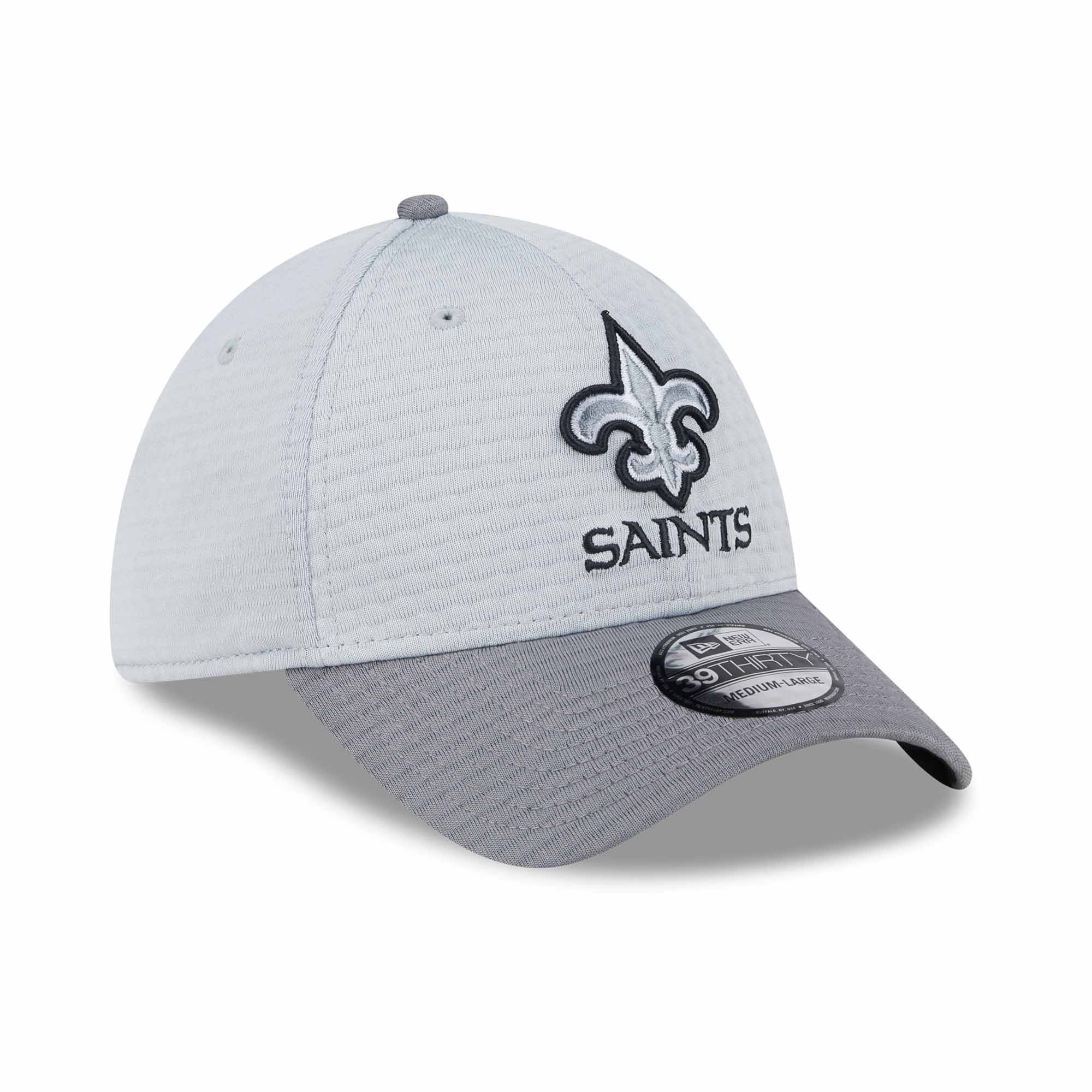 New Era American Football Cap von deinen New Orleans Saints im Stretch-Fit 39THIRTY Style aus der offiziellen 2024 NFL Training Camp Kollektion.