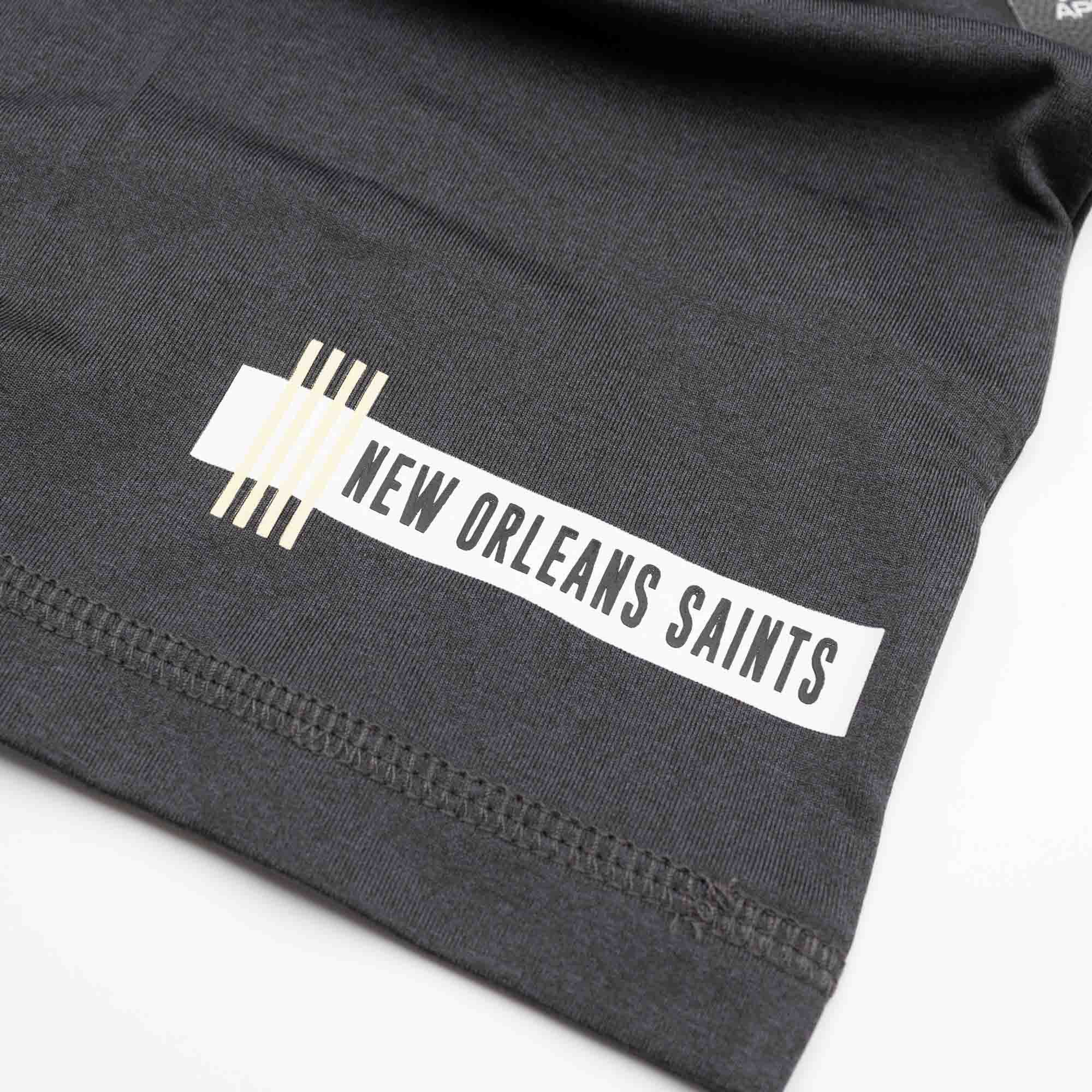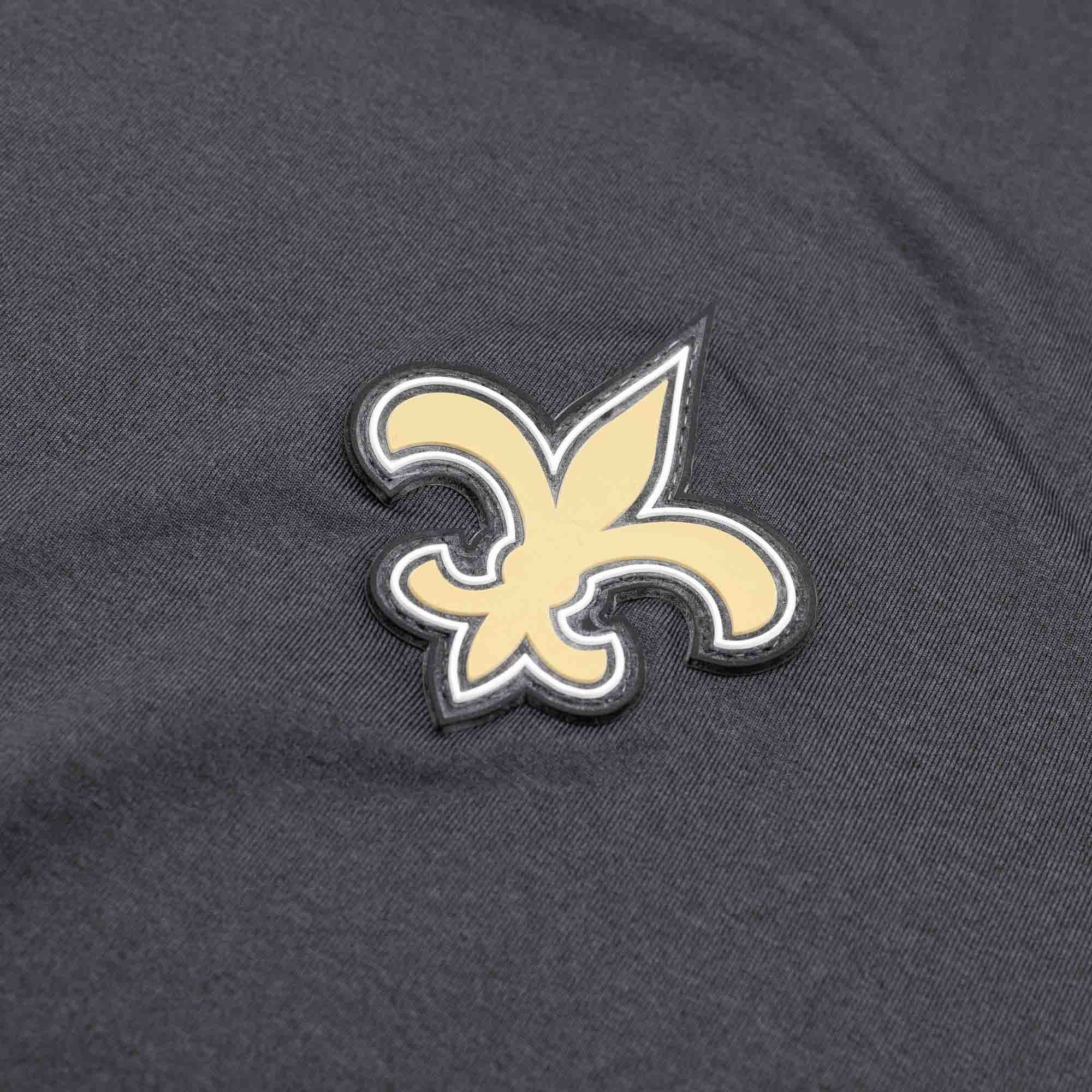- Teamstolz: Auf der linken Brust ist das ikonische New Orleans Saints Teamlogo als hochwertiges Silikon-Patch aufgenäht, während der Teamschriftzug stilvoll am vorderen Saum aufgedruckt ist.