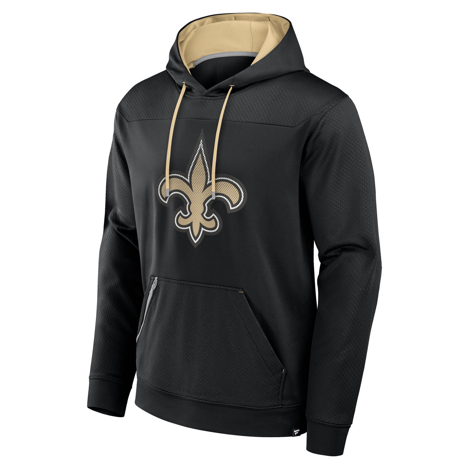 Der Defender Hoodie von Fanatics kombiniert Performance Eigenschaften mit einem modernen New Orleans Saints Teamdesign. Der Hoodie ist im Mesh-Design gehalten und auf der Vorderseite mit dem großen Teamlogo bedruckt. Zusätzlich ist die Kapuze ist in den alternativen Teamfarben ausgestattet.