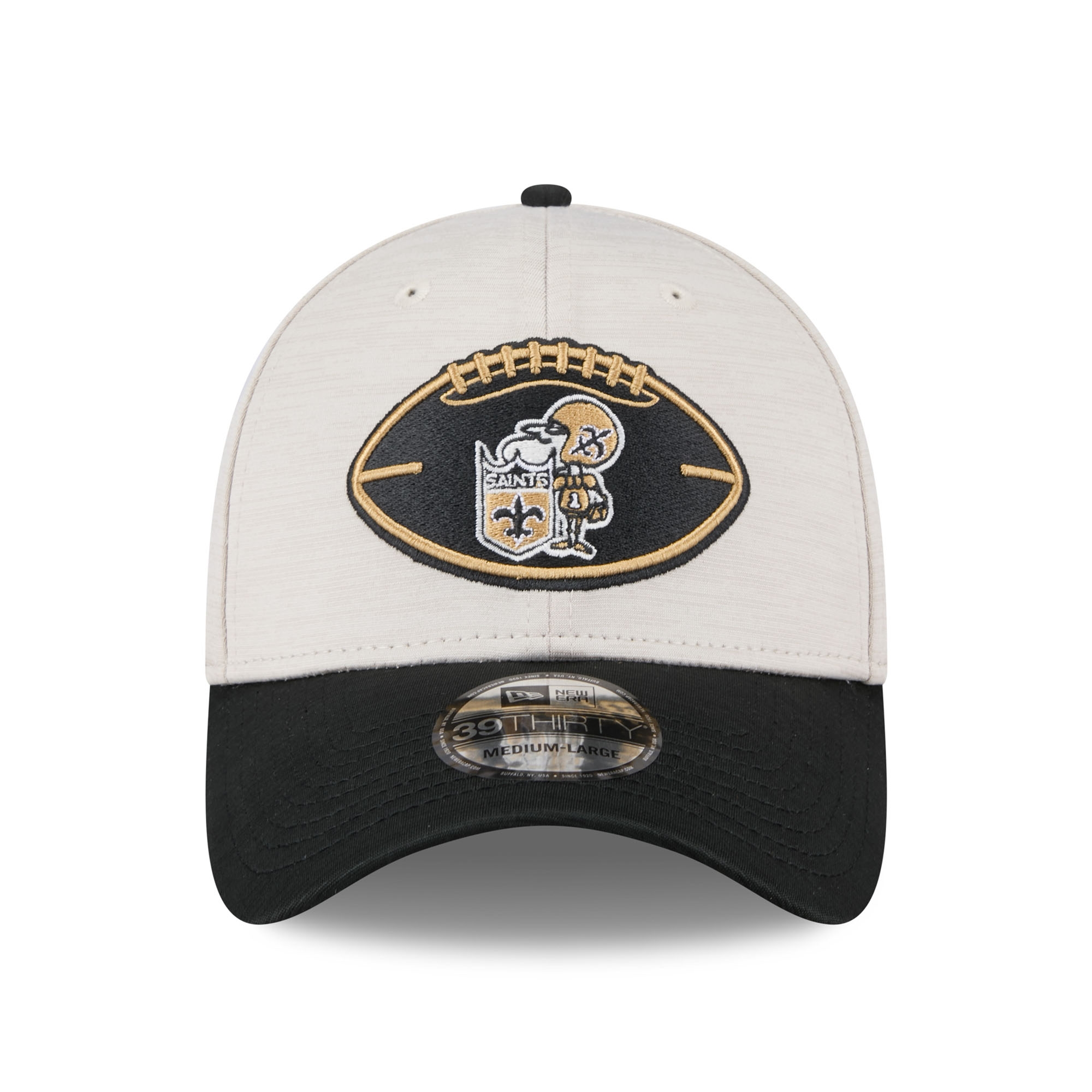 New Era American Football Stretch-Fit Cap von deinen New Orleans Saints im 39THIRTY Style aus der klassischen Throwback 2024 NFL On-Field Sideline Kollektion.