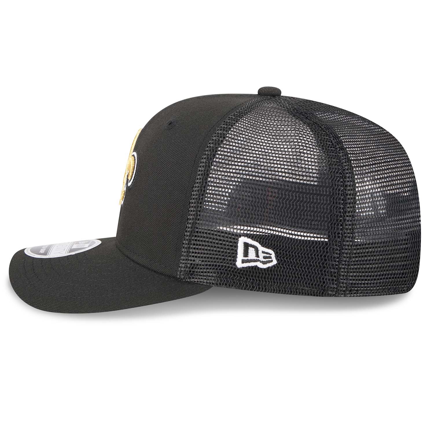 Offizielle Football-Cap der New Orleans Saints mit hoher, fester Crown, gebogenem Visor und Trucker Meshback im schwarzen Teamdesign.