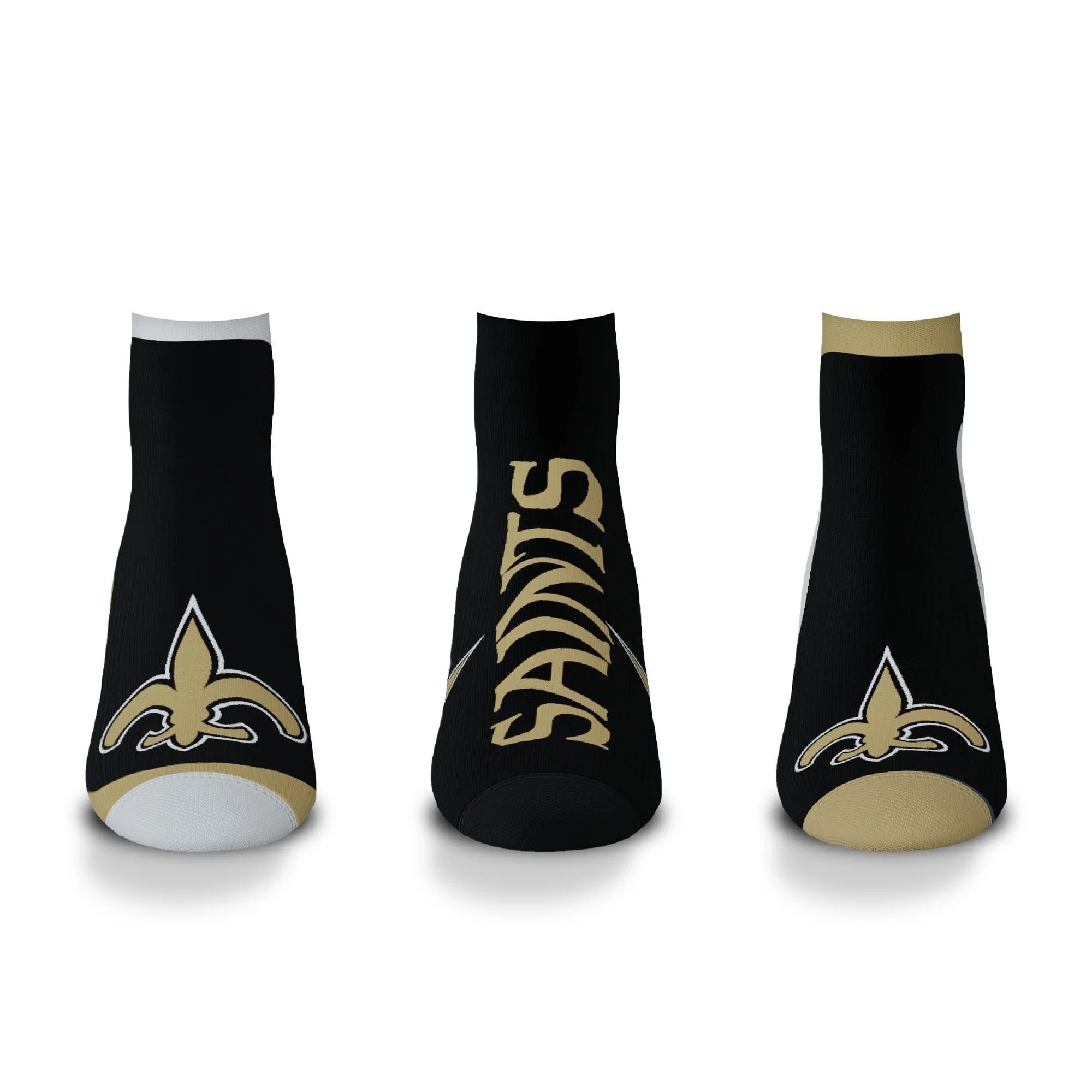 For Bare Feet NFL Herren American Football No Show Socken von den New Orleans Saints im dreiteiligen Set.