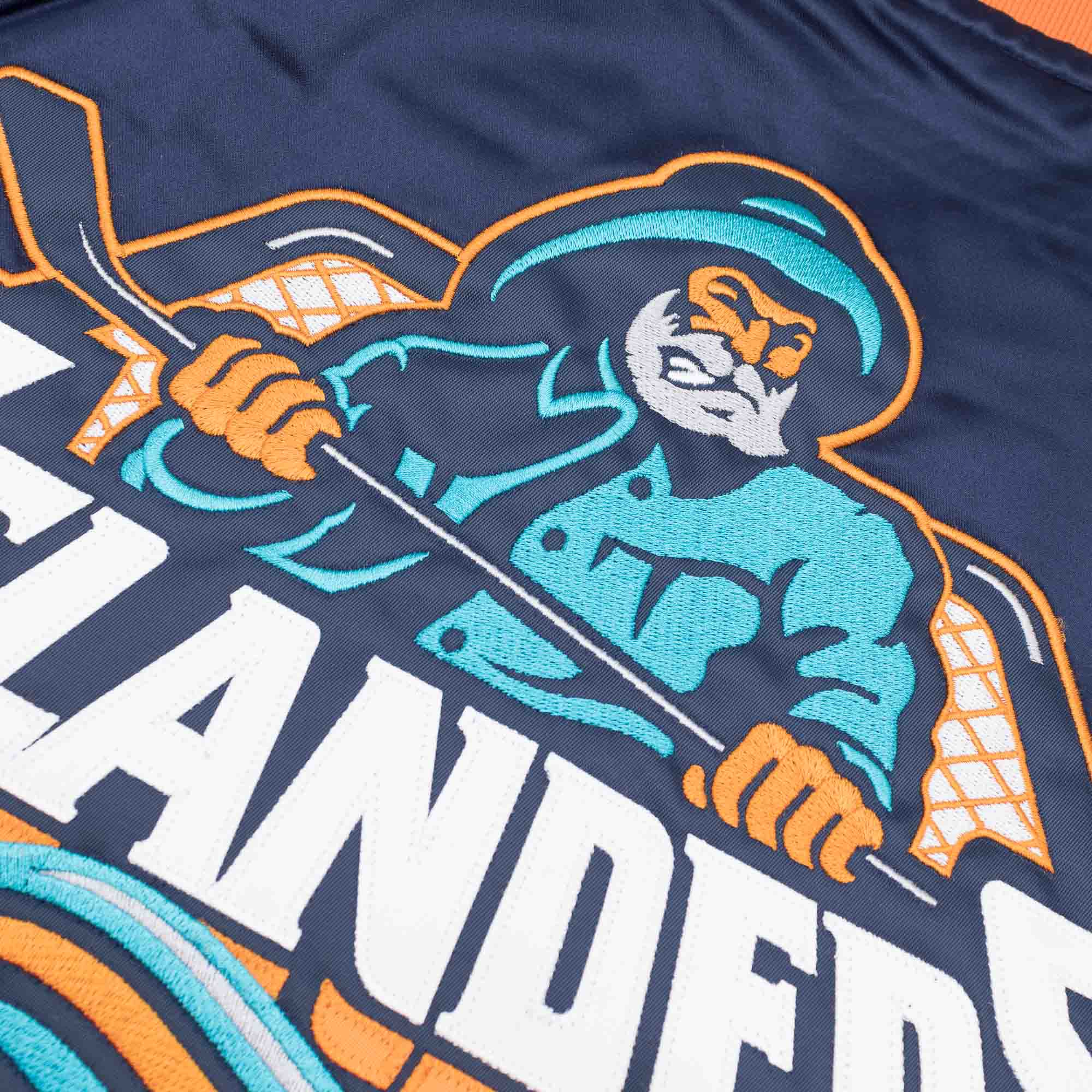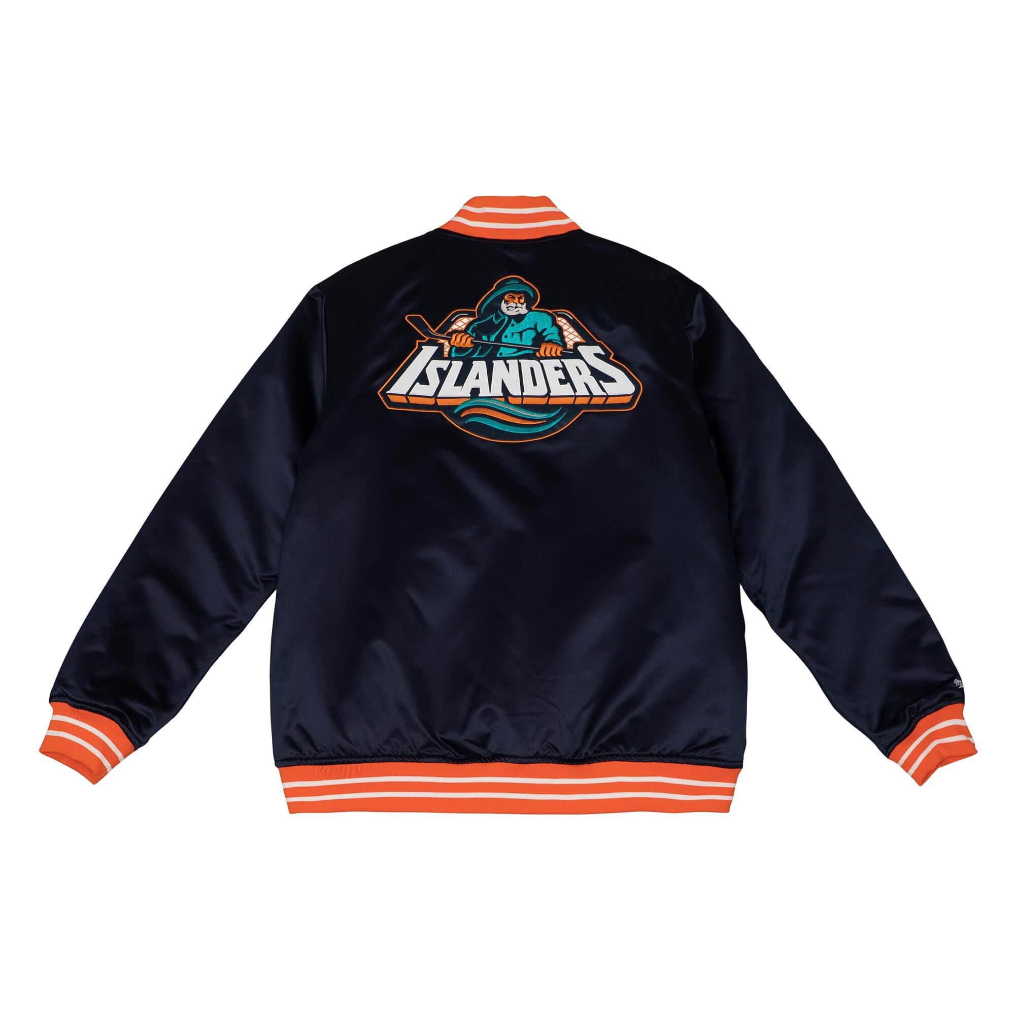 Mitchell & Ness NHL Herren Eishockey Jacke von deinen New York Islanders im hochwertigen Heavyweight Satin Design.