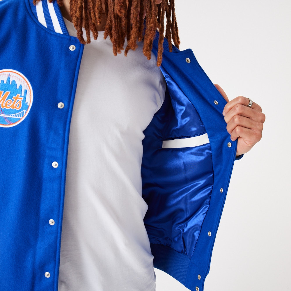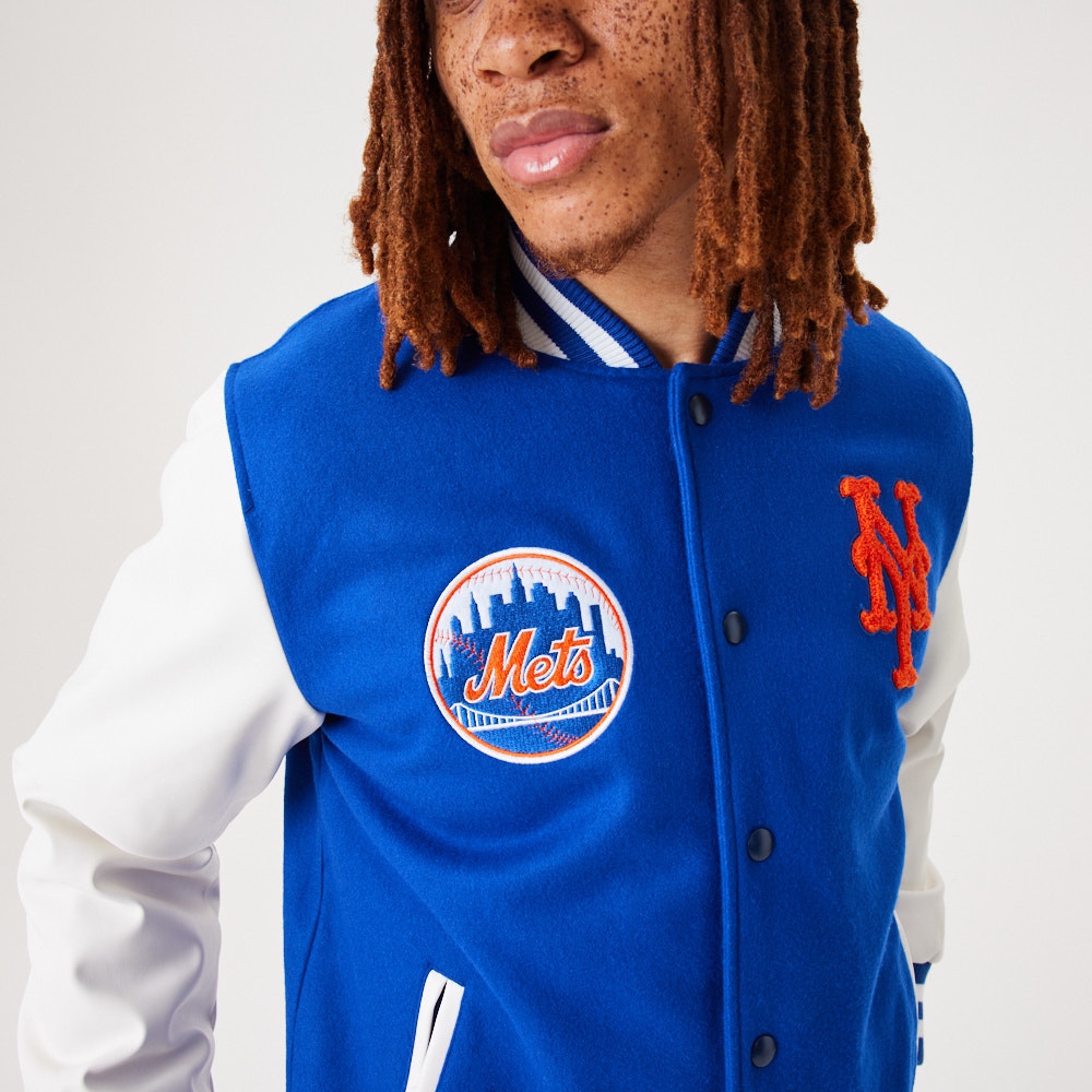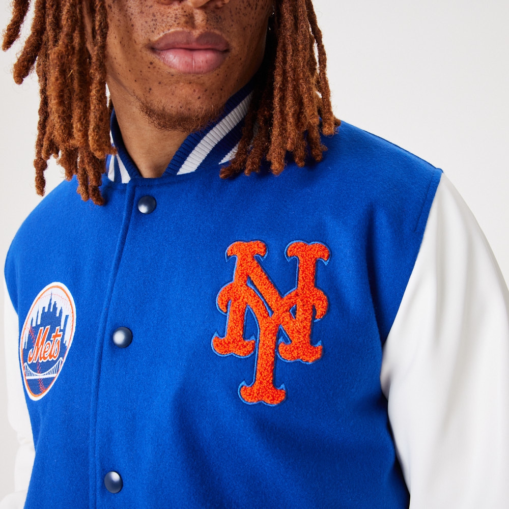 New Era MLB Herren Varsity Baseball Jacke von deinen New York Mets mit hochwertig aufgestickten Logos.