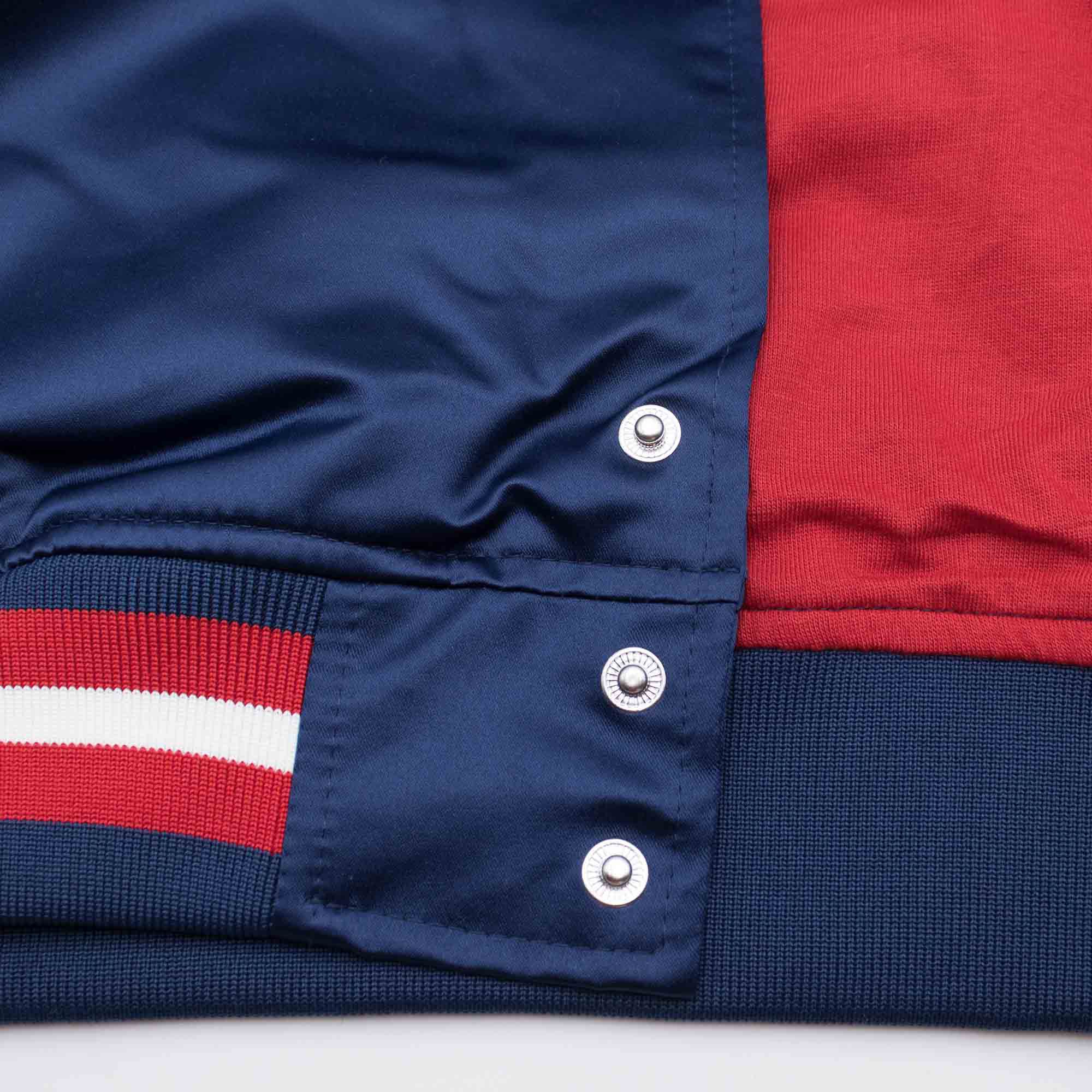 Premium Mitchell & Ness New York Rangers Retro Jacke mit klassischer Satin-Außenhülle aus der offiziellen NHL Kollektion. Die NHL Jacke hat zwei äußere Taschen, eine Innentasche und eine durchgehende Knopfleiste. Das Design ist den amerikanischen College und High School Jacken nachempfunden und der Mitchell & Ness Schriftzug ist wie immer am rechten Ärmelsaum aufgestickt. Auf der Front sind der New York Rangers Schriftzug und das Teamlogo hochwertig aufgenäht. Unter dem Kragen auf der Innenseite ist das Mitchell & Ness Logo aufgenäht. Das weiche Jersey-Inlay sorgt für ein absolut angenehmes Tragegefühl. Mit dem eindeutigen Eishockey Style ist diese leichte Jacke ein perfekter Begleiter für die Übergangszeit im Herbst, Frühling oder in kühlen Sommernächten.