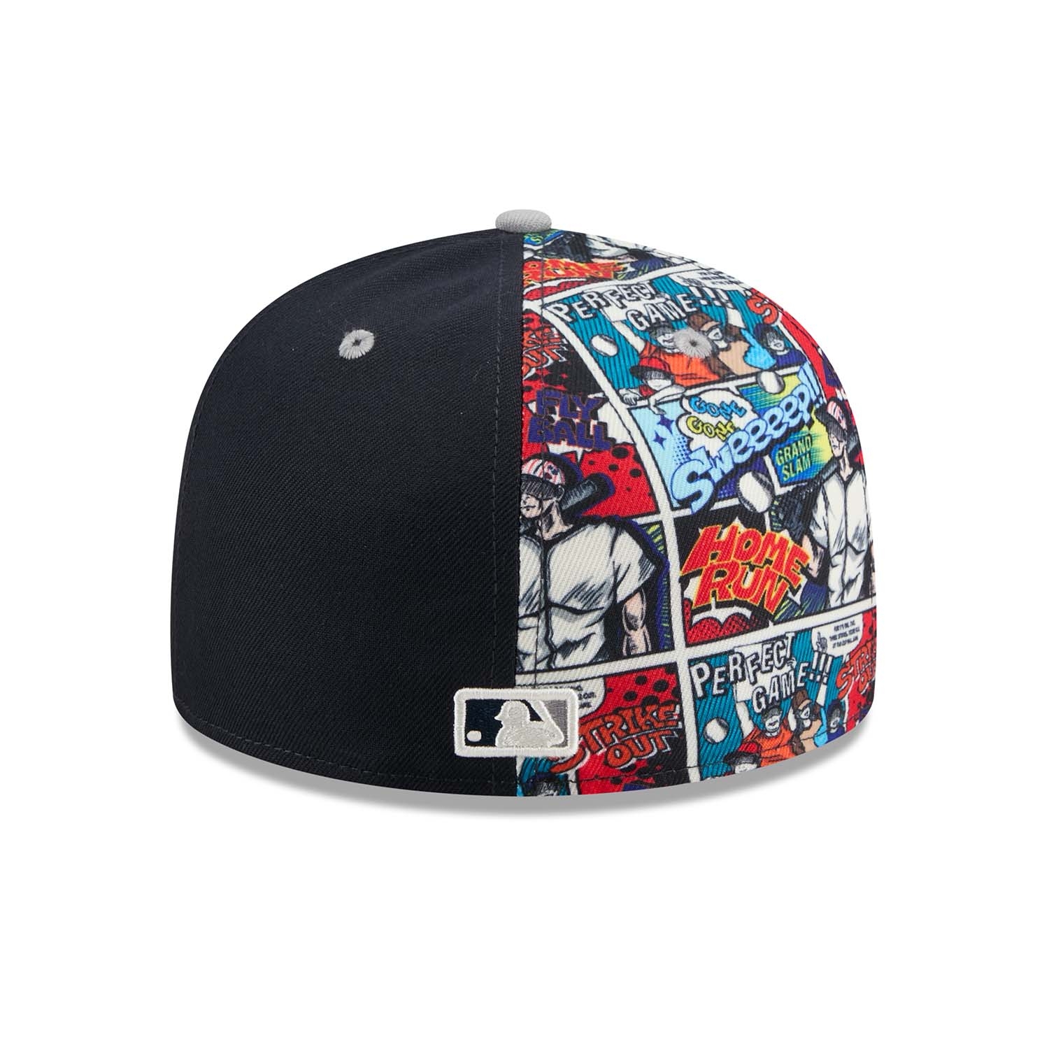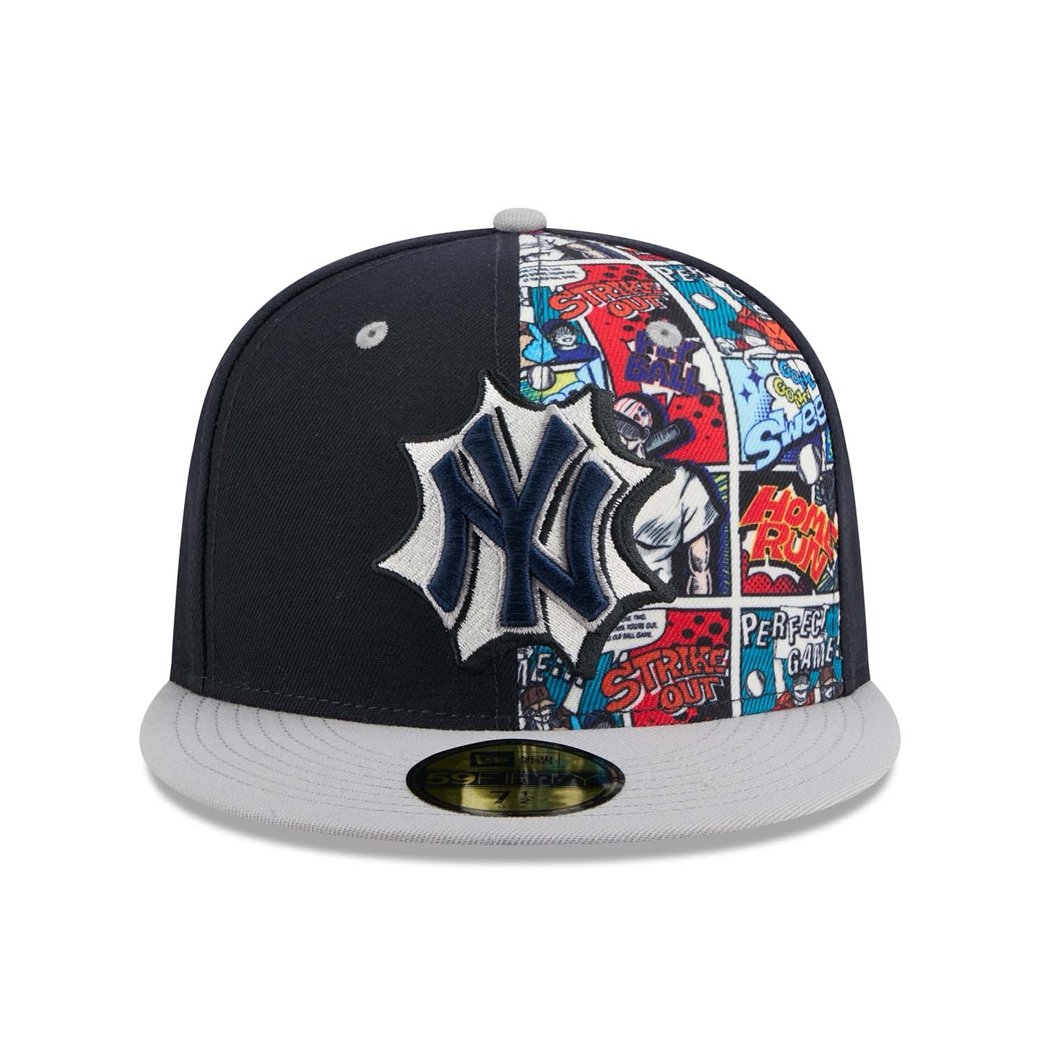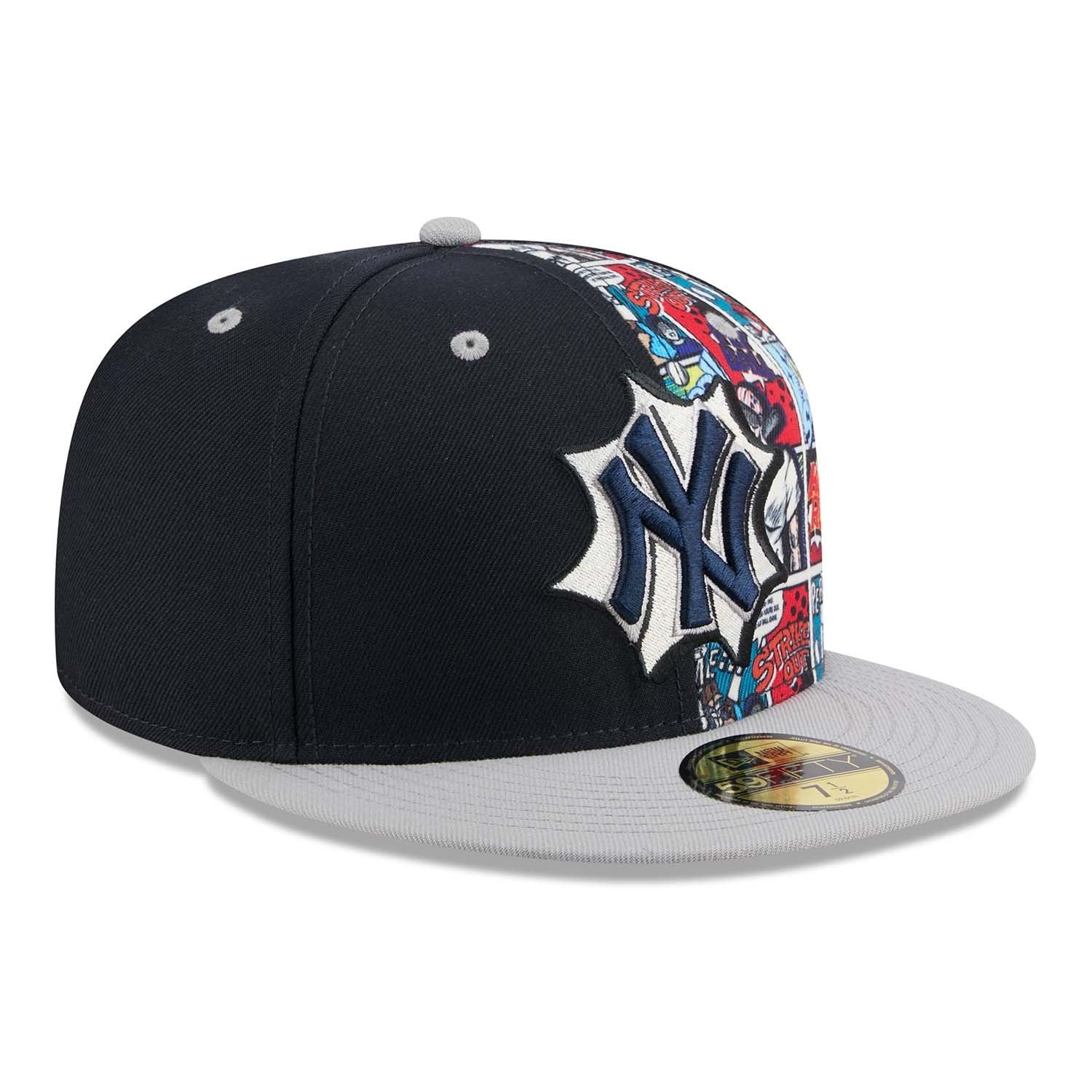 - New York Yankees Logo in 3D-Stick auf der Front - platziert auf einem kontrastreichen Allover-Comic-Print im Stil klassischer Graphic Novels.