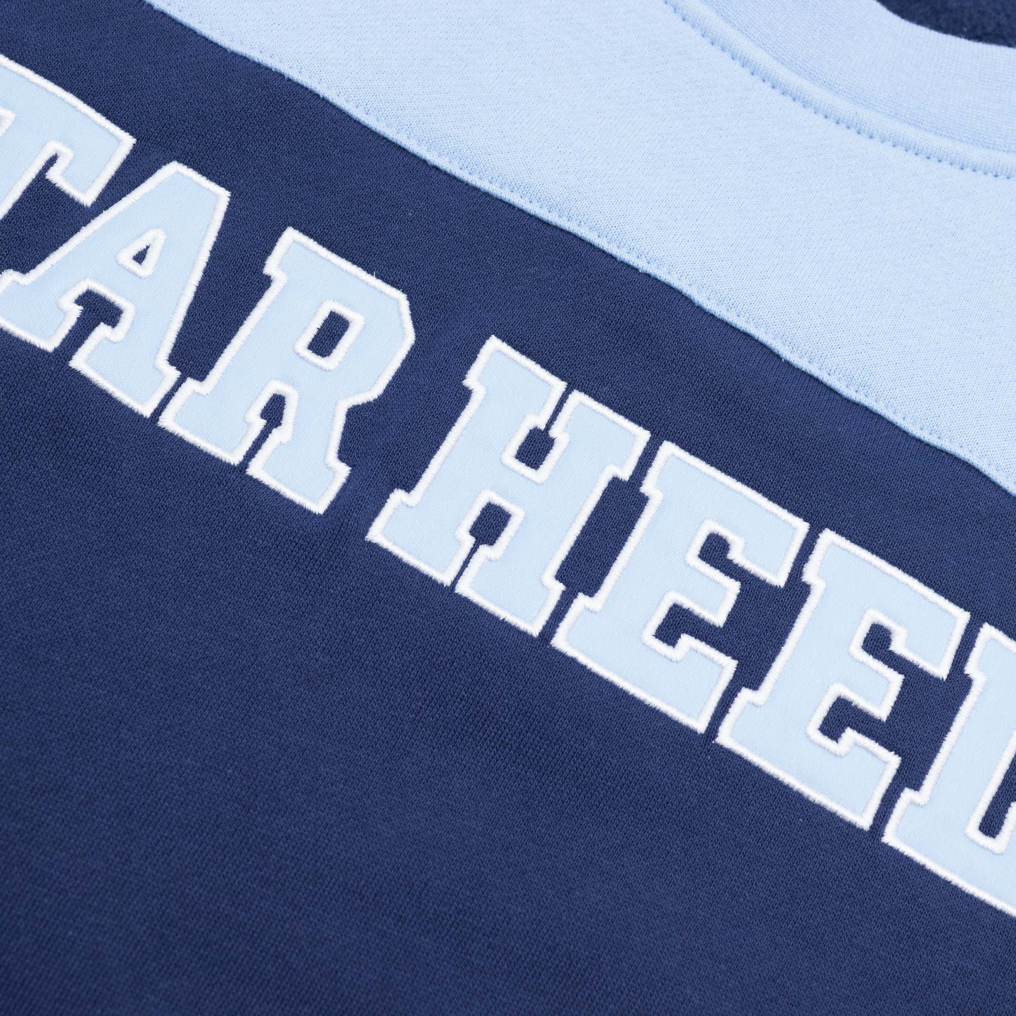 Hochwertiger Mitchell & Ness Premium College Vault Pullover im eindeutigen NCAA Teamdesign. Die Vorderseite ist hochwertig mit dem North Carolina Tar Heels Wordmark bestickt. Passend dazu sind die Ärmel mit den Teamlogos bedruckt. Abgerundet wird der College Look mit dreifarbigen Teamdesign und dem Mitchell & Ness Schriftzug am rechten Ärmelende. Das extra weiche Baumwoll-Polyester-Fleece sorgt für ein super angenehmes und warmes Tragegefühl. Das klassische Color Block Design ist Alltagstauglich und sorgt für deinen täglichen College-Style.