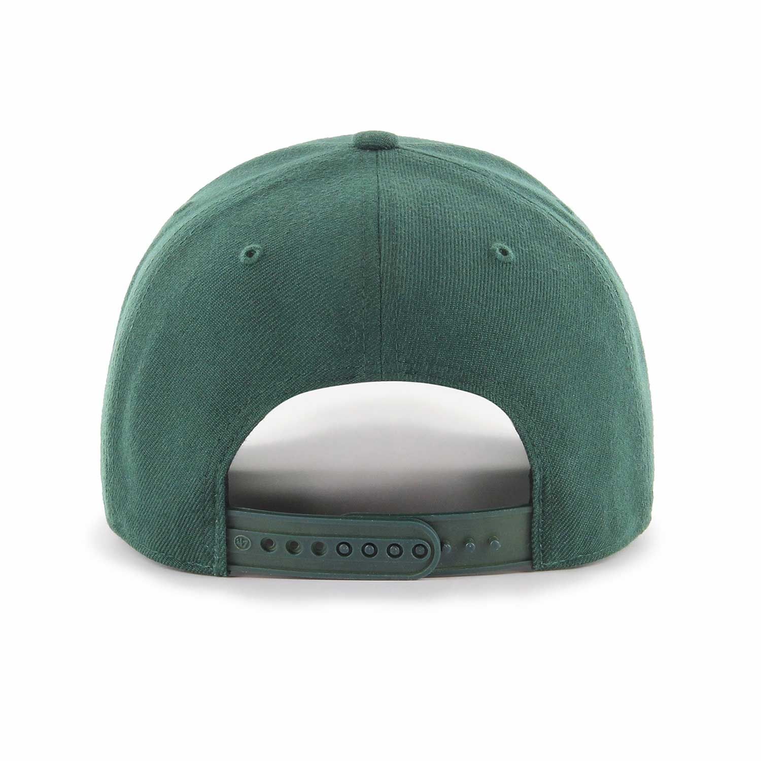 Grüne Oakland A's Cap mit einer hohen, festen Krone und leicht gebogenen Schirm. Die Front ist mit dem Oakland Athletics "A's" Teamlogo im 3D-Design bestickt. Die Größe kann mit dem Snapback-Verschluss angepasst werden. Zusätzlich ist auf der linken Seite das '47 Brand Logo aufgestickt.