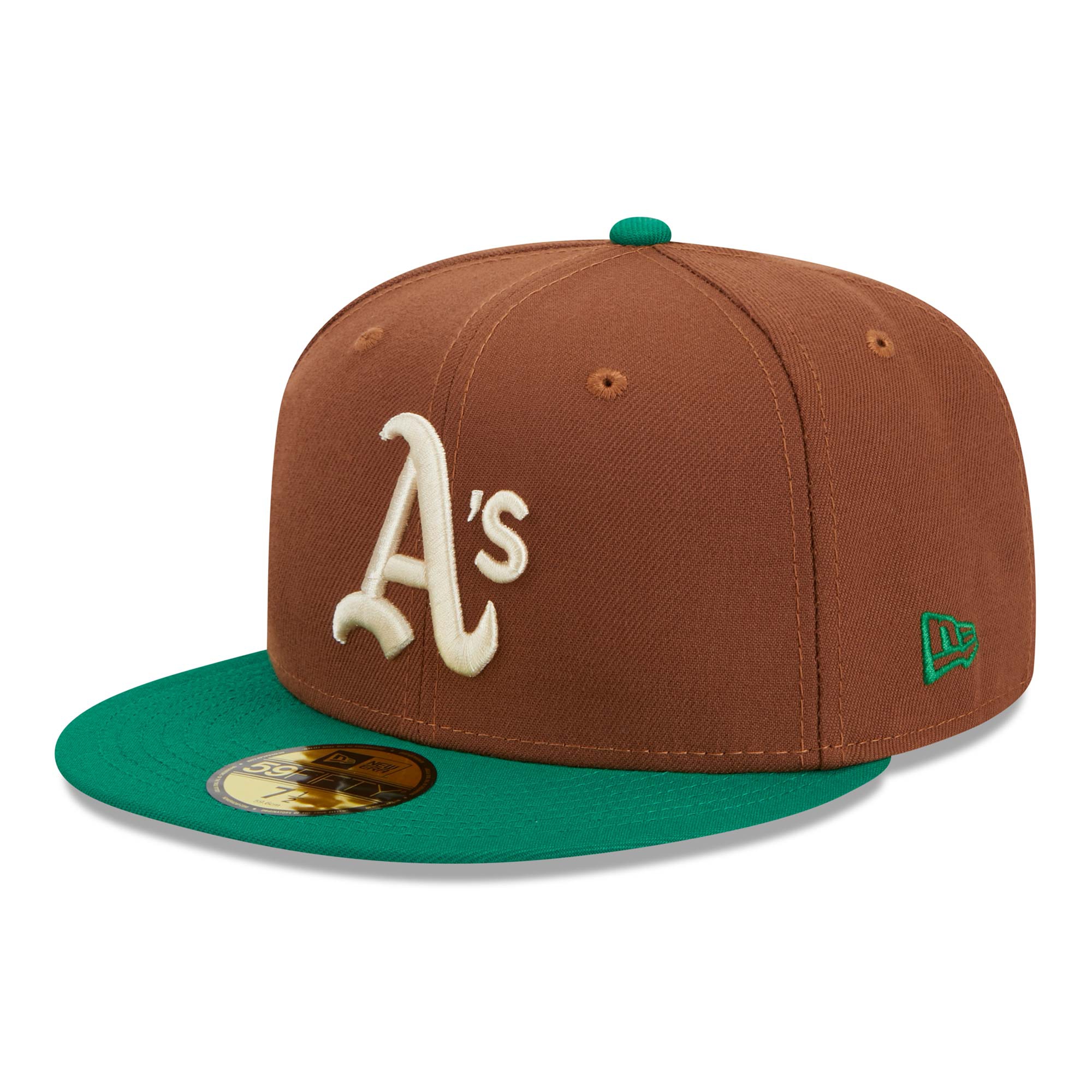 New Era MLB Baseball Cap von deinen Oakland Athletics im braunen 59FIFTY Fitted Harvest Style.
