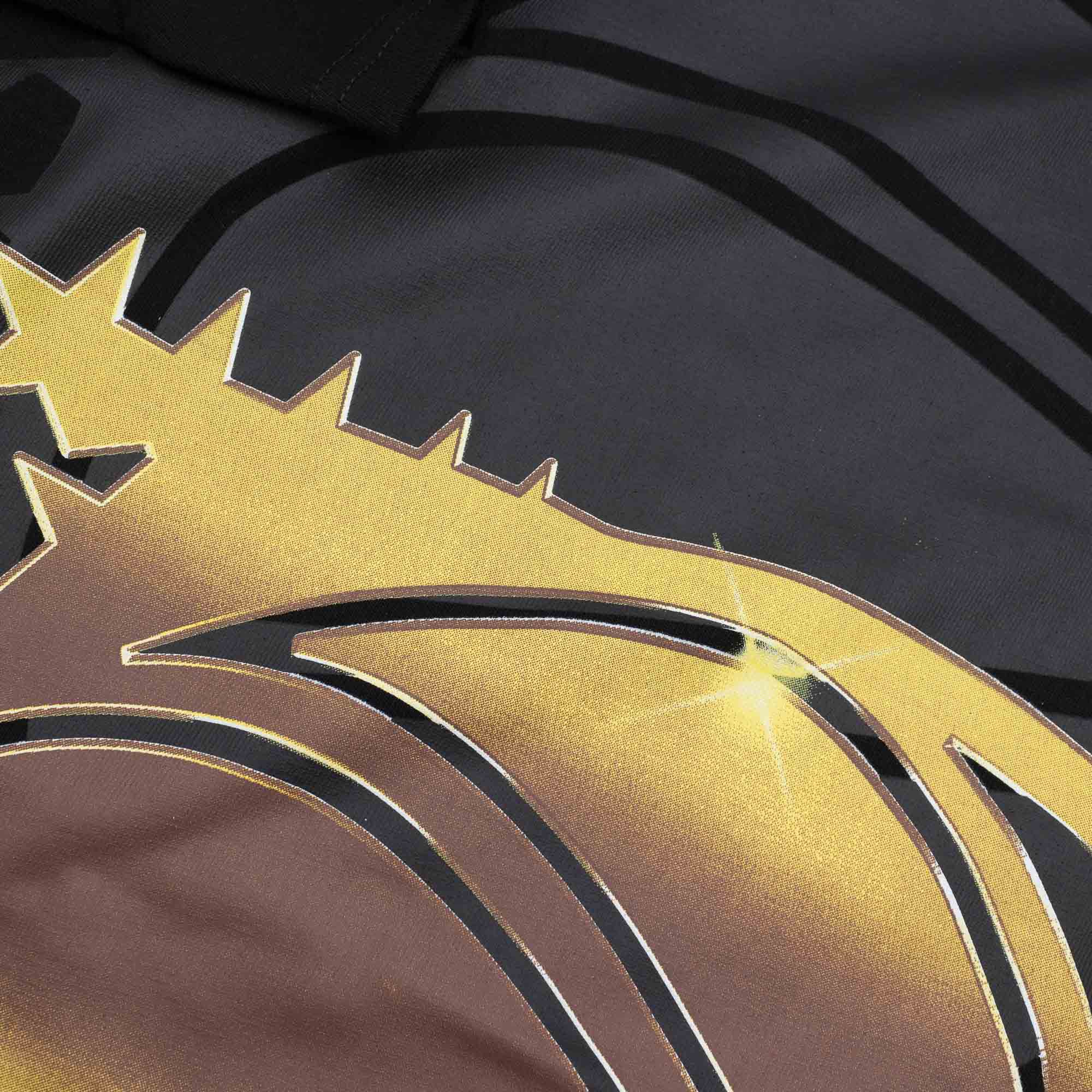 Mitchell and Ness Premium Basketball T-Shirt aus 100% extra schwerer Baumwolle (290 g/m²). Die hochwertige Verarbeitung und das Premium Material erinnern an die guten alten Zeiten, als Kleidungsstücke noch eine lange Haltbarkeit gewährleisten mussten. Die Vorderseite des NBA Tees ist mit dem übergroßen Big Face 4.0 Orlando Magic Teamlogo in Gold dekoriert. Mit dem schwarz-goldenen Design und dem aufgenähten Hardwood Classics Mitchell & Ness Label am Saum überzeugt das NBA Tee auch modisch jeden Basketball Fan. Klassischer, weiter Mitchell & Ness Unisex Relaxed Fit mit Rundhalsausschnitt für eine absolut entspannte Passform. Abgerundet wird das Design mit dem gestickten Mitchell & Ness Wordmark am rechten Ärmel.