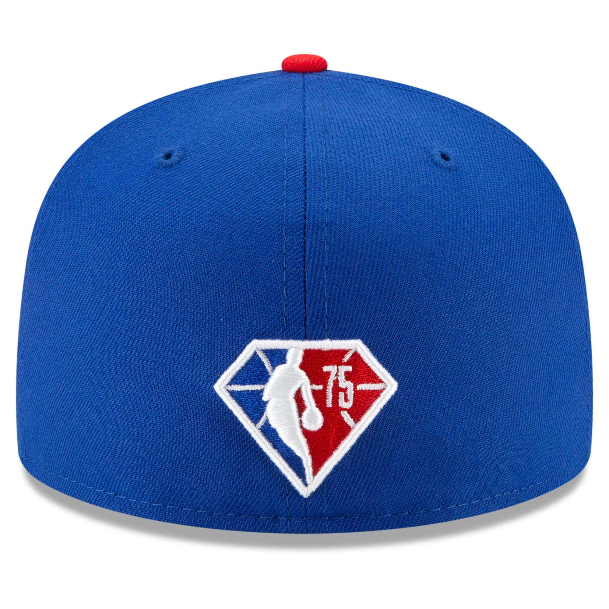 Offizielle Basketball 59FIFTY Fitted Kappe aus der 2021 NBA Draft Series produziert in Premium-Qualität von New Era. Die Cap-Vorderseite ist mit dem speziell designten Philadelphia 76ers Teamlogo im 3D-Design bestickt. Die Rückseite ziert das offizielle 75th Anniversary Diamond NBA-Logo. Die NBA Draft Cap überzeugt im zweifarbigen Teamdesign und der grauen Schirmunterseite.