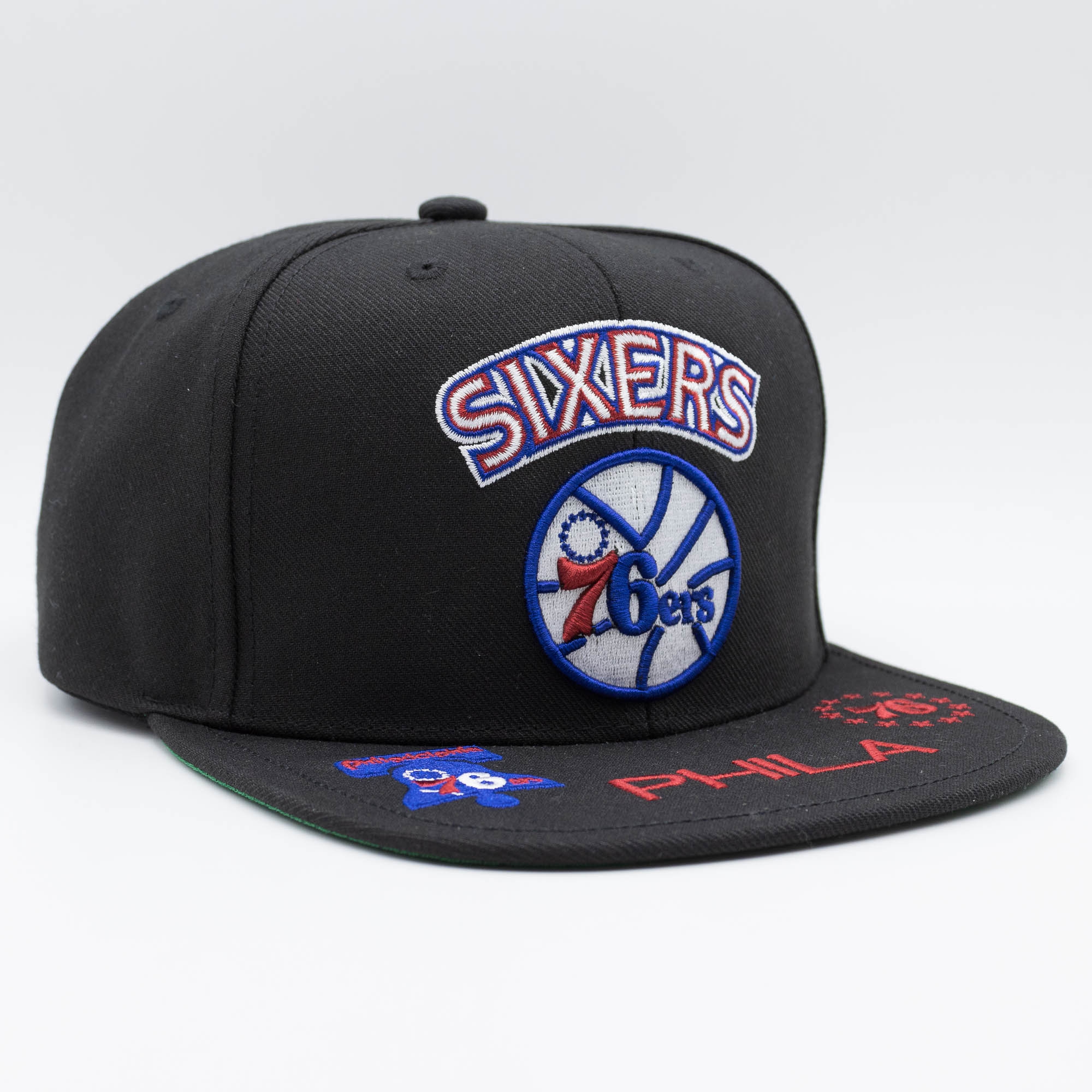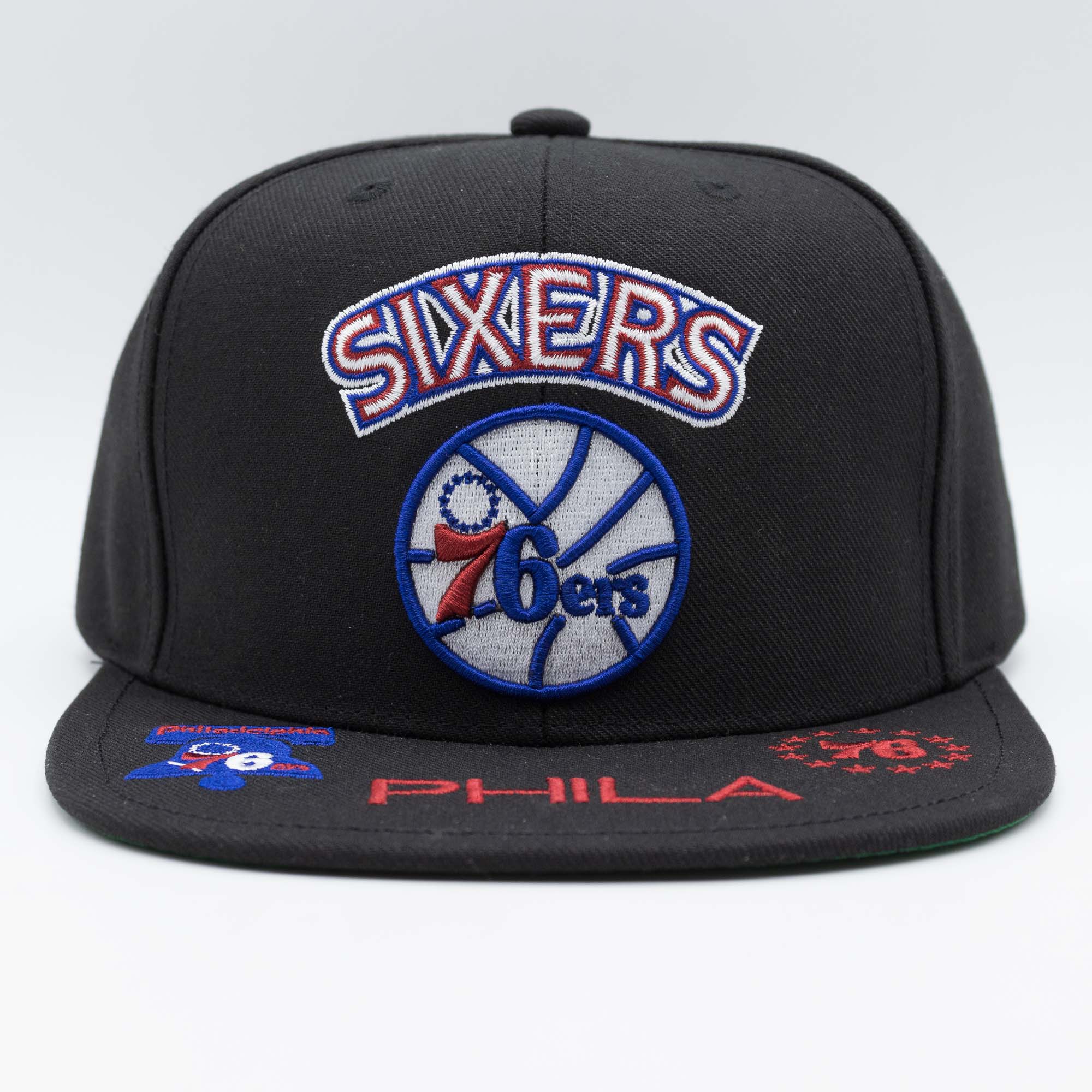 Mitchell & Ness NBA Original Fit Basketball Snapback Cap von deinen Philadelphia 76ers im Front Loaded Style.