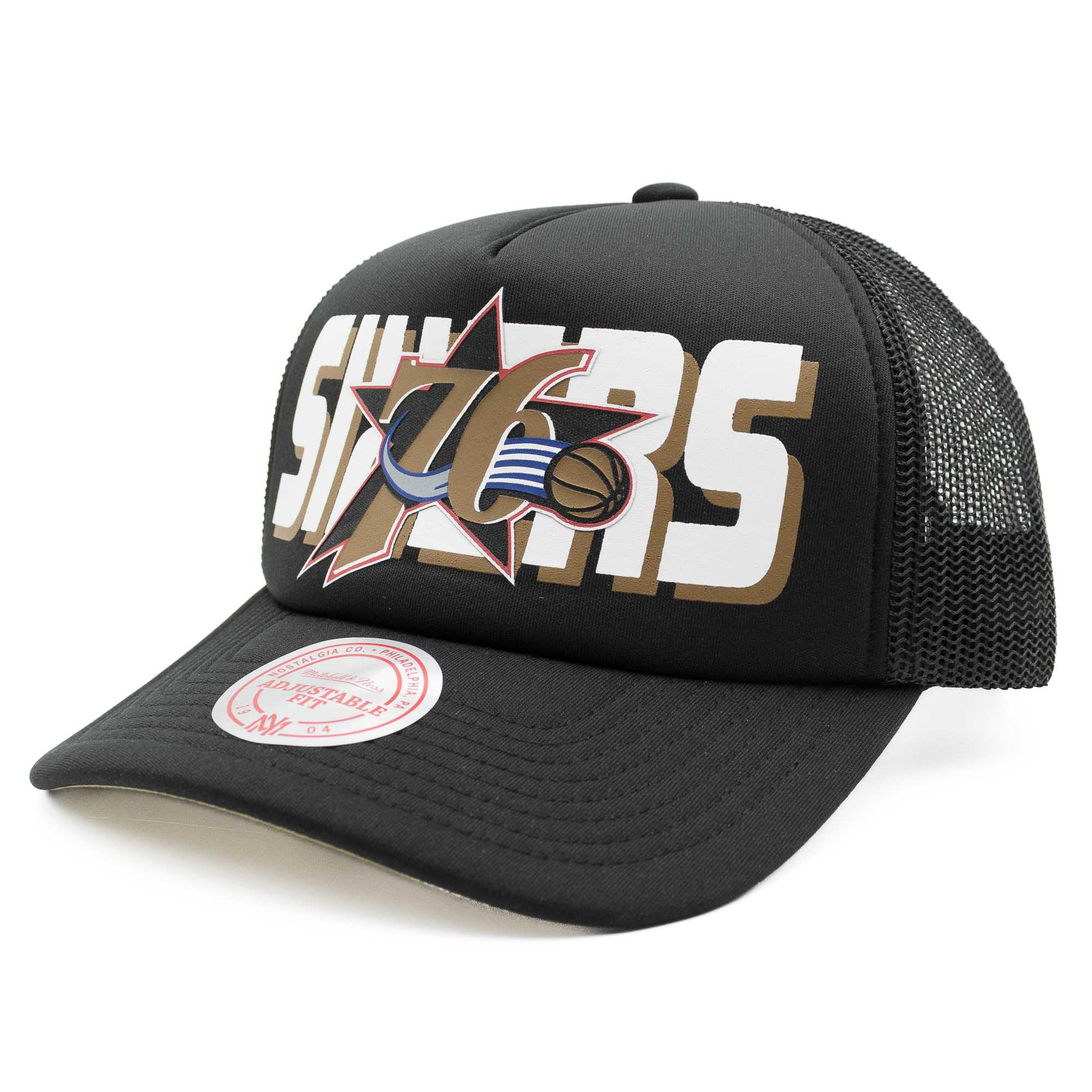 Mitchell & Ness NBA Adjustable Fit Trucker Cap von deinen Philadelphia 76ers im Team Billboard Style.
