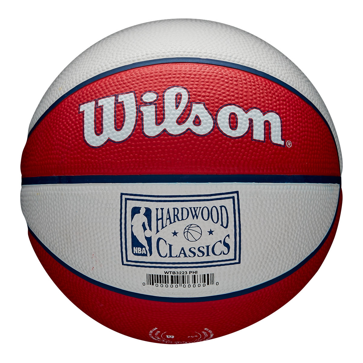 Wilson NBA All Surface Outdoor Mini-Basketball von deinen Philadelphia 76ers im Retro Hardwood Classics Style.