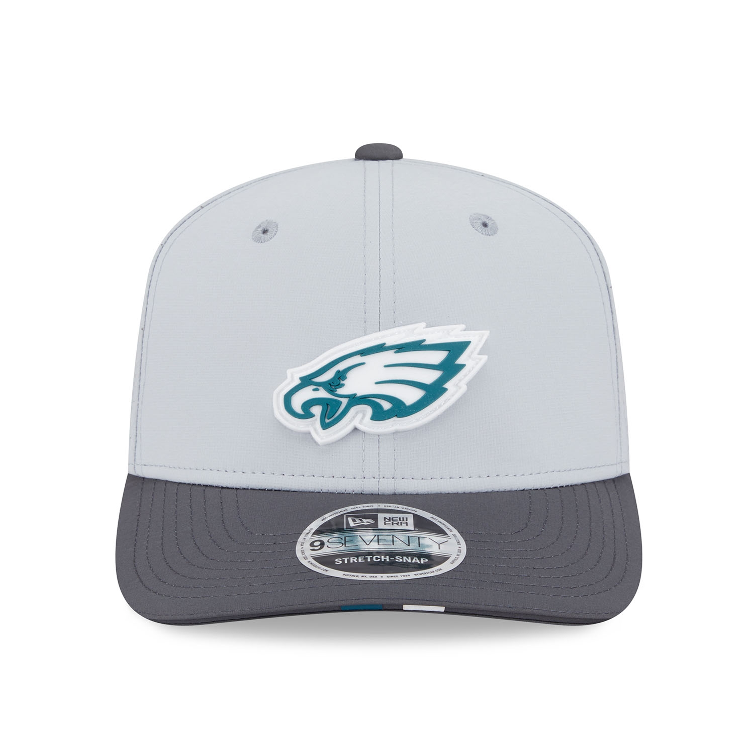 New Era American Football Cap deiner Philadelphia Eagles Stretch-Snap 9SEVENTY Cap aus der offiziellen 2025 NFL Training Camp Kollektion.