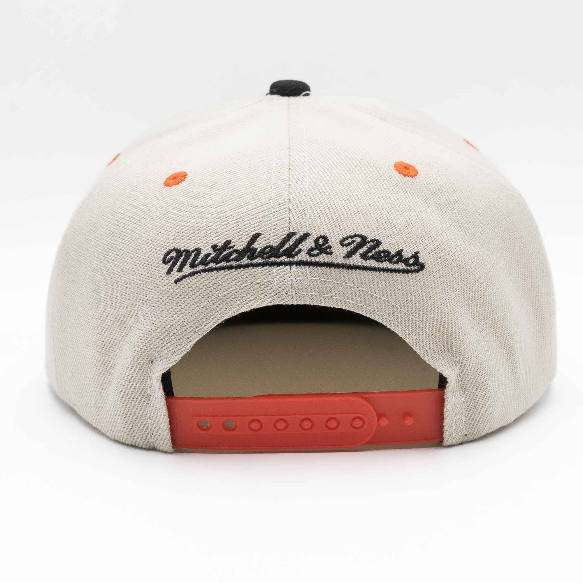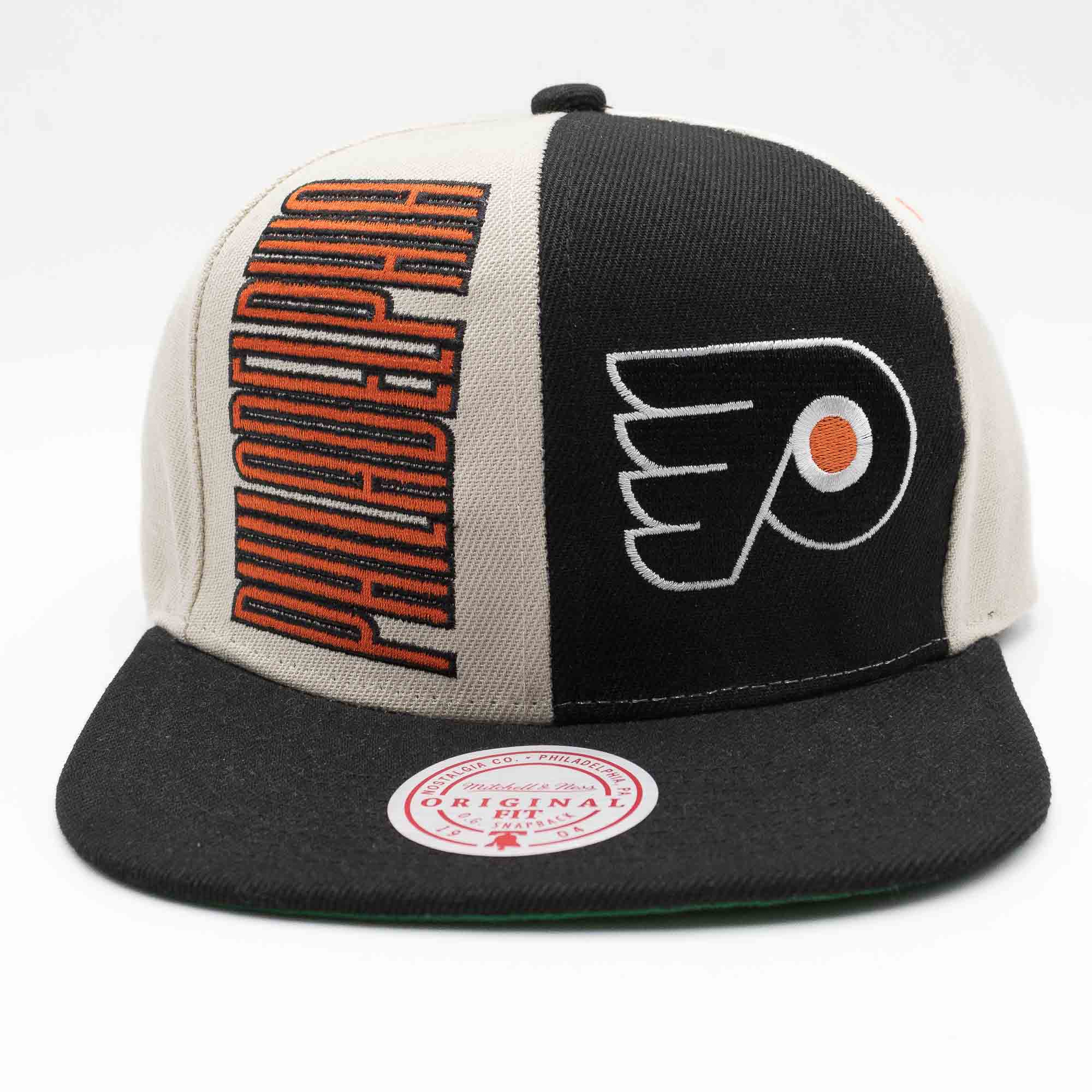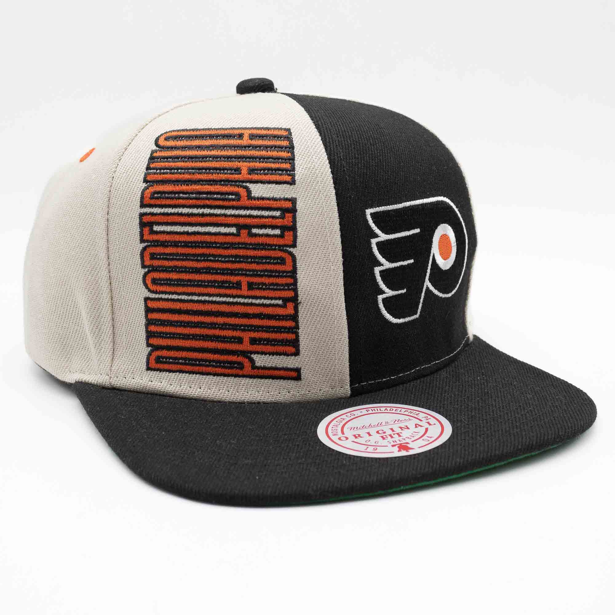 Mitchell & Ness NHL Original Fit Eishockey Snapback Cap von den Philadelphia Flyers im zweifarbigen Off White Pop Panel Design.
