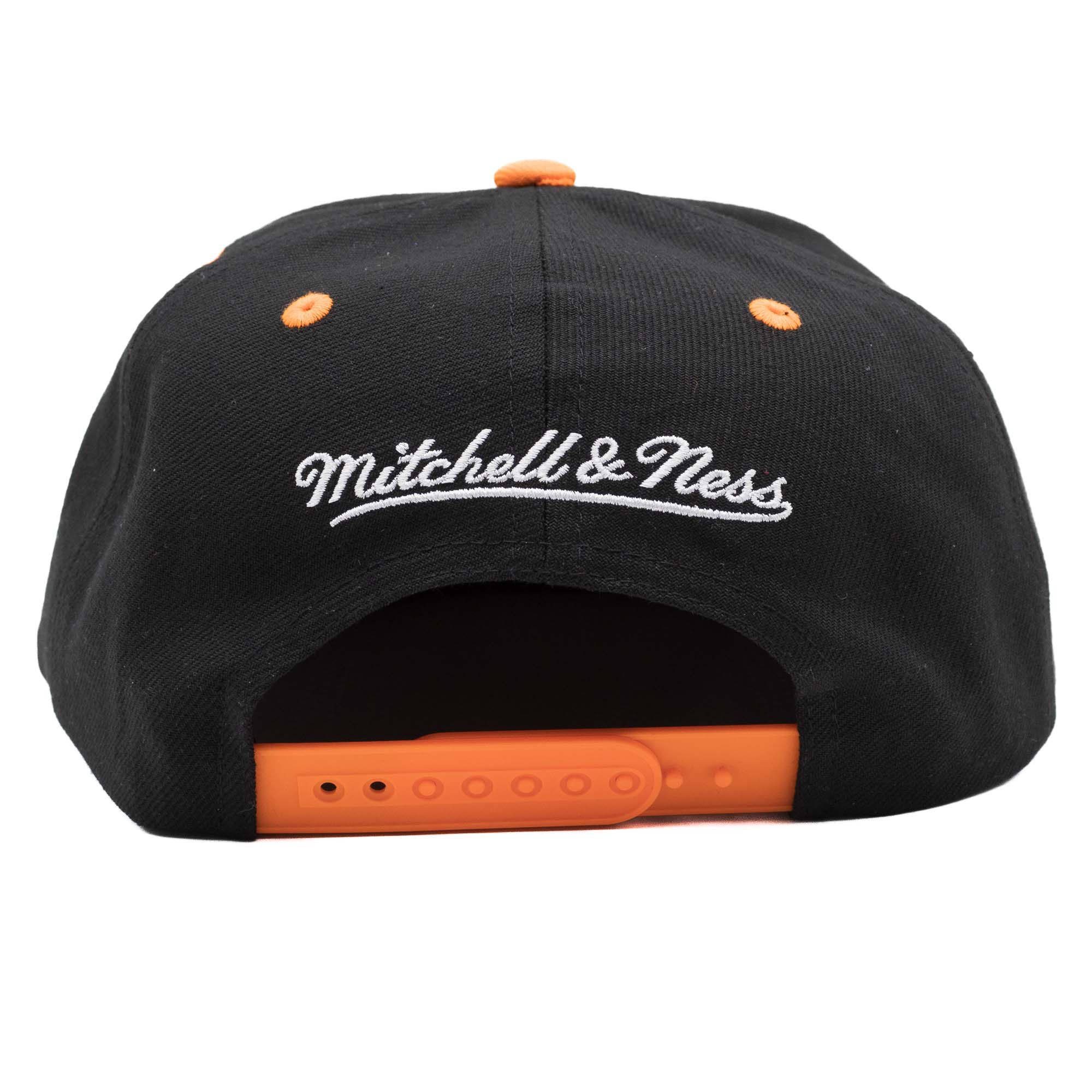 Klassische Mitchell & Ness Original Fit Snapback mit schlanken, flachen Schirm und hoher, fester Krone. Für mehr Atmungsaktivität sorgen die gestickten Ösen; das innenseitige Schweißband erhöht den Tragekomfort. Den flachen Capschirm kannst du nach Belieben in die gewünschte Form biegen.