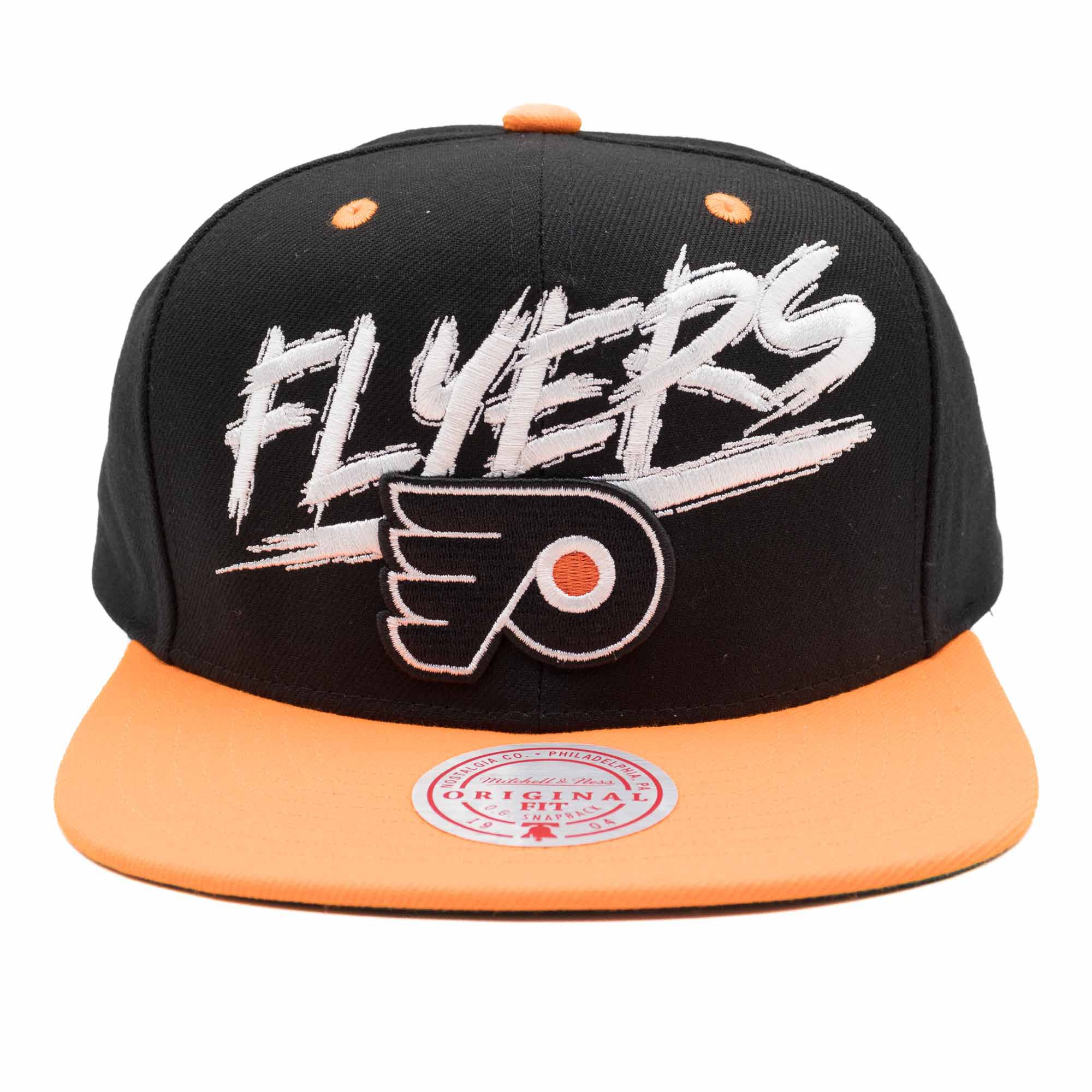 Mitchell & Ness NHL Original Fit Eishockey Snapback Cap von deinen Philadelphia Flyers im zweifarbigen Transcript Style.