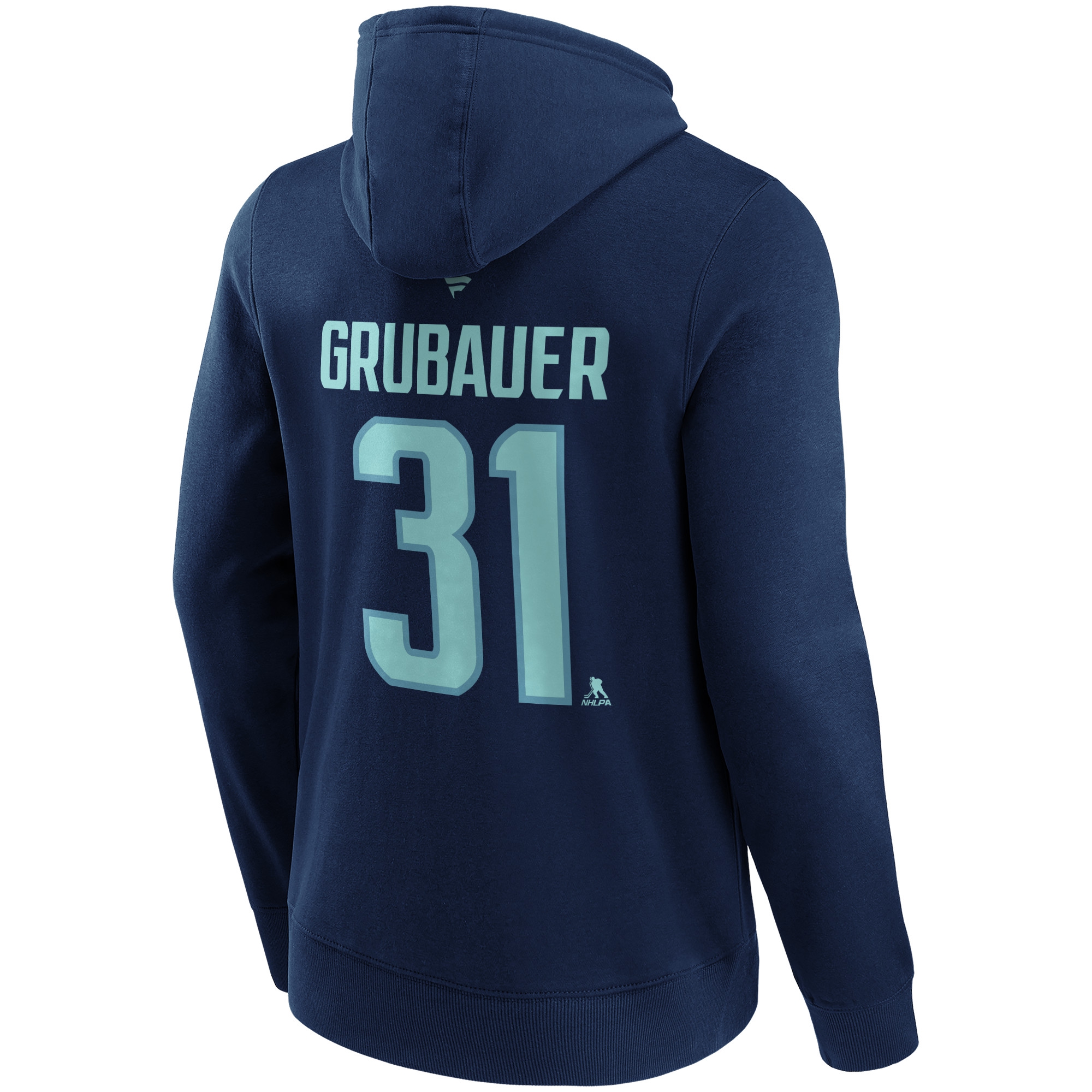 Seattle Kraken Spieler Hoodie mit aufgedruckten Namen und Nummer von deinem neuen Lieblingsspieler: Philipp Grubauer! Das Seattle Kraken Player Sweatshirt ist die modische und auch günstigere Alternative zum originalen NHL-Trikot. Vorder- und Rückseite zeigen die Spielernummer, die Rückseite zusätzlich den Spielernamen. Durch den originalgetreuen Druck der Ziffern und Buchstaben entsteht der eindeutige NHL-Jersey-Look. Als kleines Extra ist auf der Vorderseite zusätzlich das NHL Shield über der Nummer aufgedruckt.