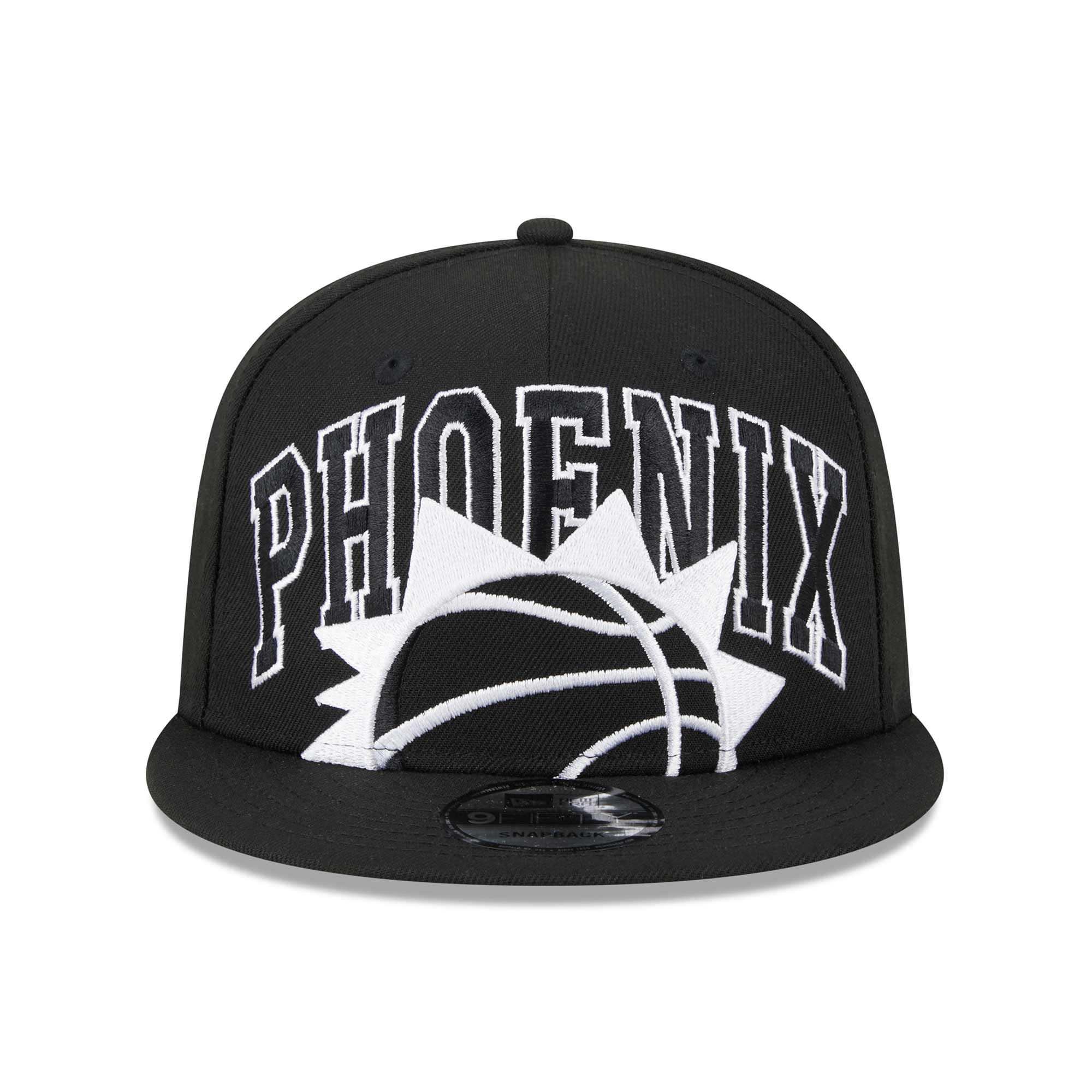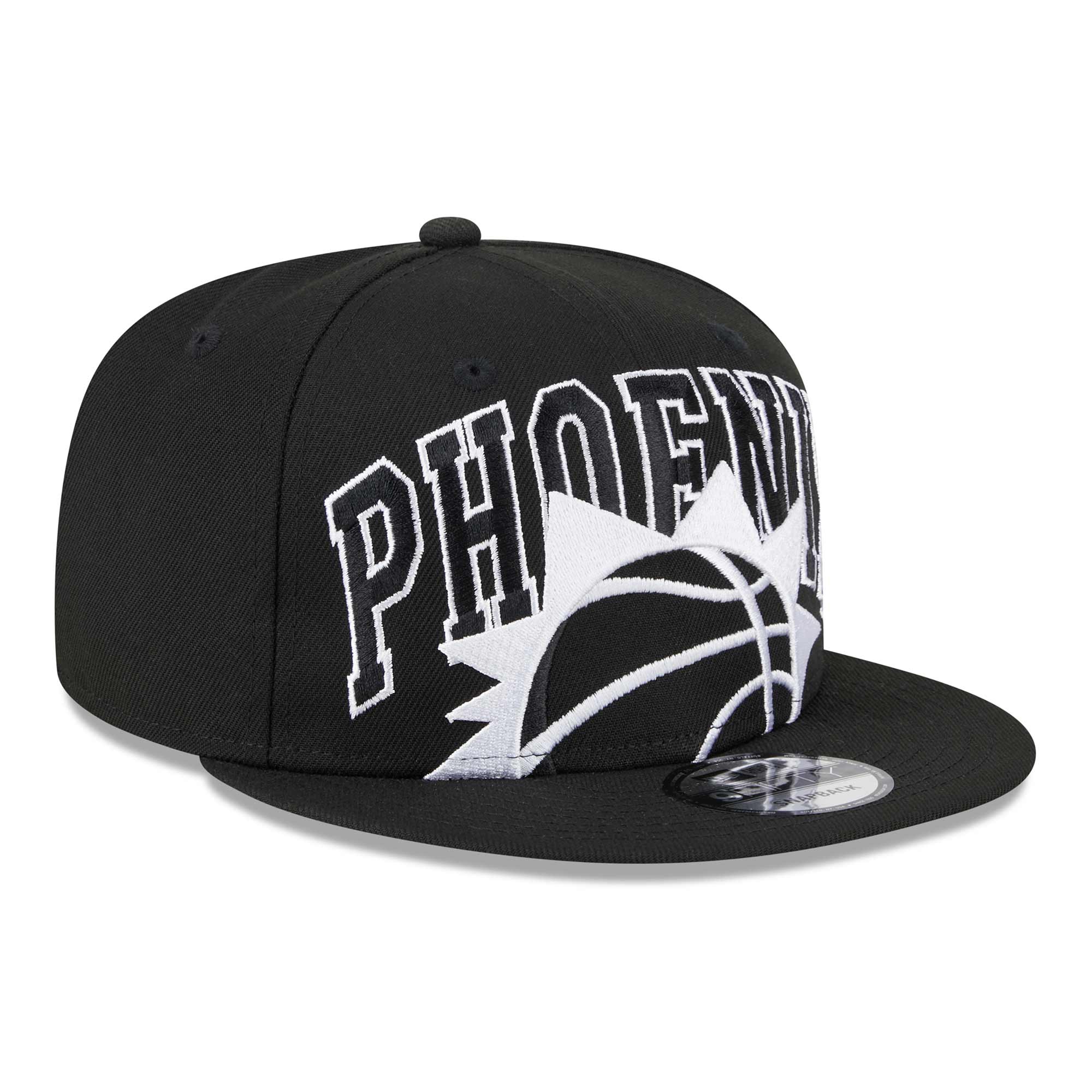 New Era Basketball Snapback Cap von deinen Phoenix Suns im 9FIFTY Style aus der schwarzen Colorway 2023/24 NBA Season Tip-Off Kollektion.