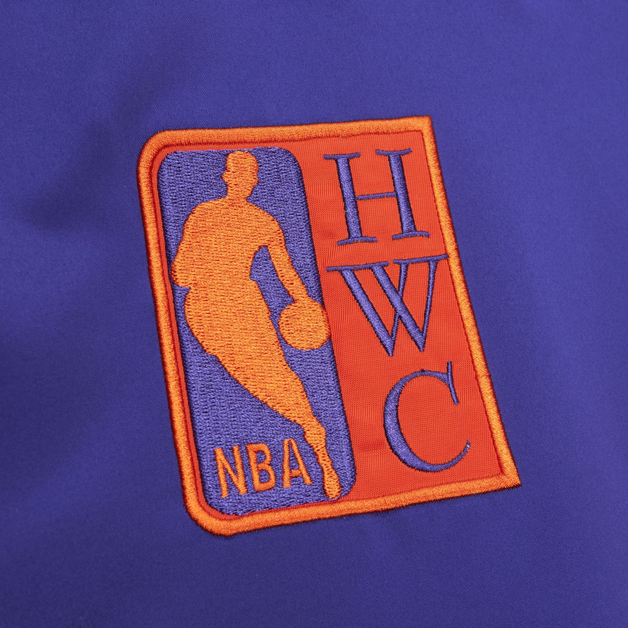 Der Mitchell & Ness Schriftzug ist am rechten Ärmelsaum aufgestickt. Auf der Front sind das Phoenix Suns Retro-Teamlogo und das HWC NBA Logo jeweils hochwertig aufgestickt. Dier Rückseite ist mit dem extra großen Team-Wordmark bestickt. Abgerundet wird das Basketballdesign mit den aufgenähten Ärmelstreifen. Das mittelschwere Futter sorgt auch an kalten Tagen für eine angenehme Wärmeisolierung, die elastischen Strickbünde am Kragen, am Bund und an den Ärmelenden sorgen für den absoluten Retro-Look.