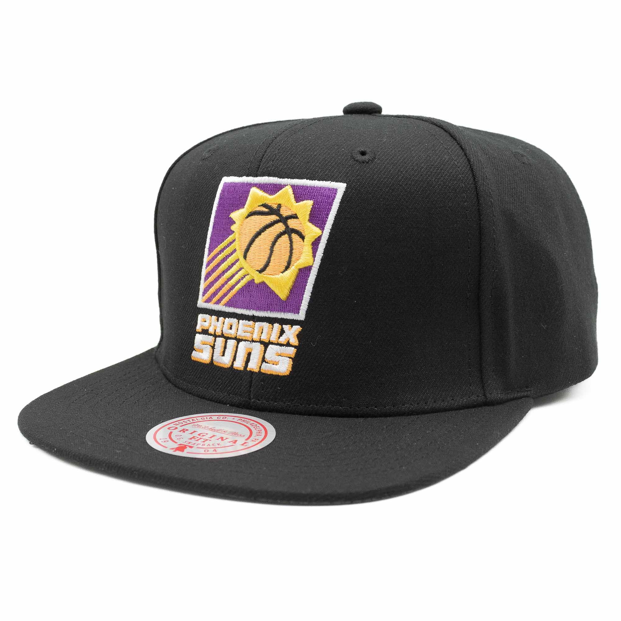 Die klassische Mitchell and Ness Basketball Snapback Cap kommt im edlen, schwarzen Design und hochwertig aufgestickten Logos. Die Vorderseite der Cap ist prominent mit dem Phoenix Suns Teamlogo im 3D-Design bestickt. Zusätzlich ziert die rechte Capseite der Phoenix All-Star 2009 Patch. Abgerundet wird der Snapback Look mit dem Mitchell & Ness Schriftzug auf der Rückseite und der grauen Schirmunterseite.