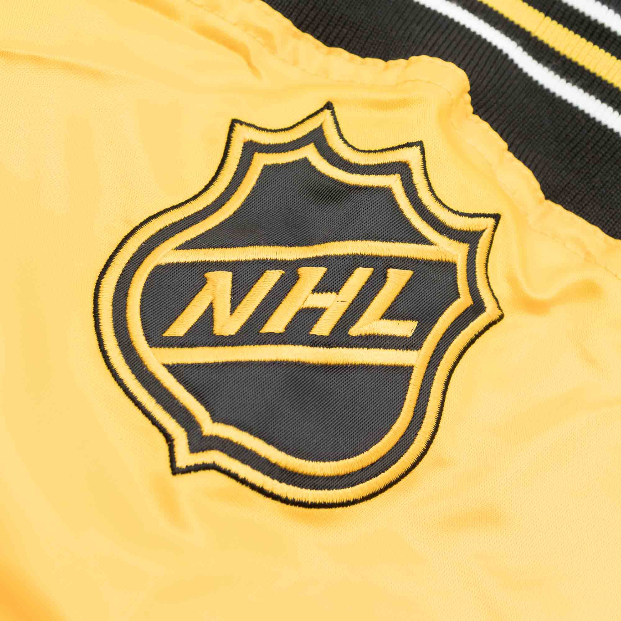 Starter NHL Herren Varsity Satin Jacke im zweifarbigen Enforcer Style deiner Pittsburgh Penguins.