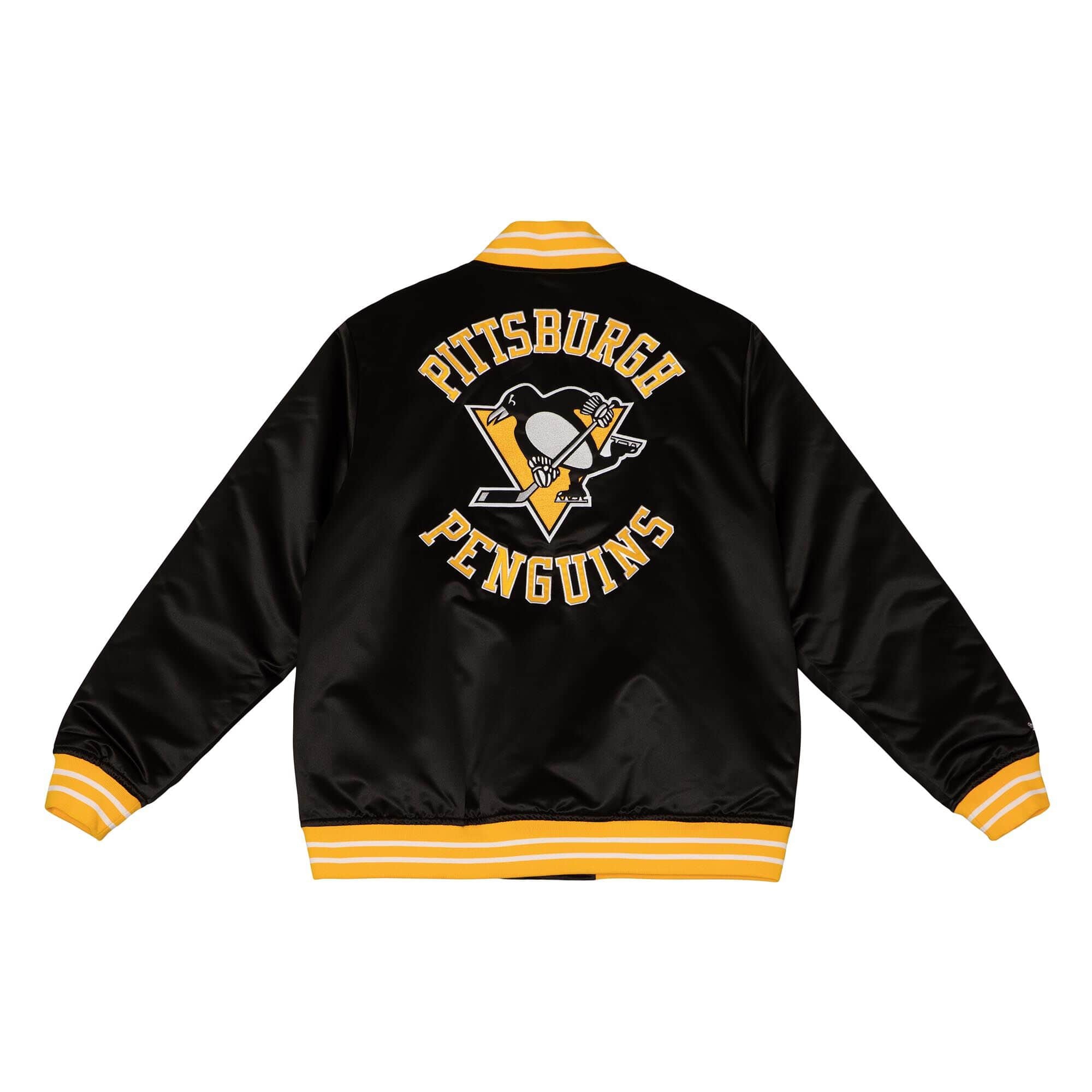 Mitchell & Ness NHL Herren Eishockey Jacke von deinen Pittsburgh Penguins im hochwertigen Heavyweight Satin Design.