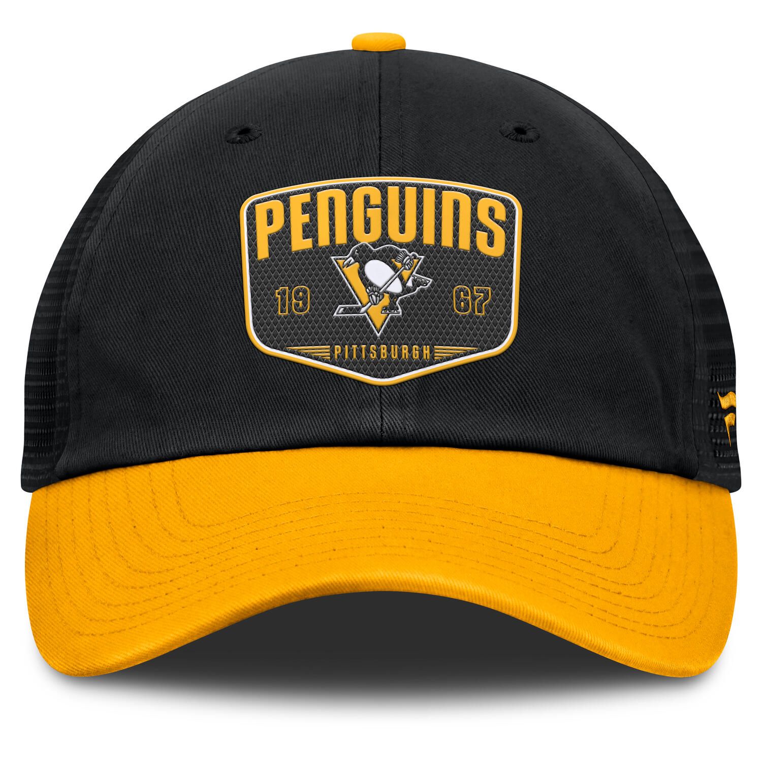 Fanatics Eishockey Adjustable Trucker Cap von deinen Pittsburgh Penguins im One-Timer Design.